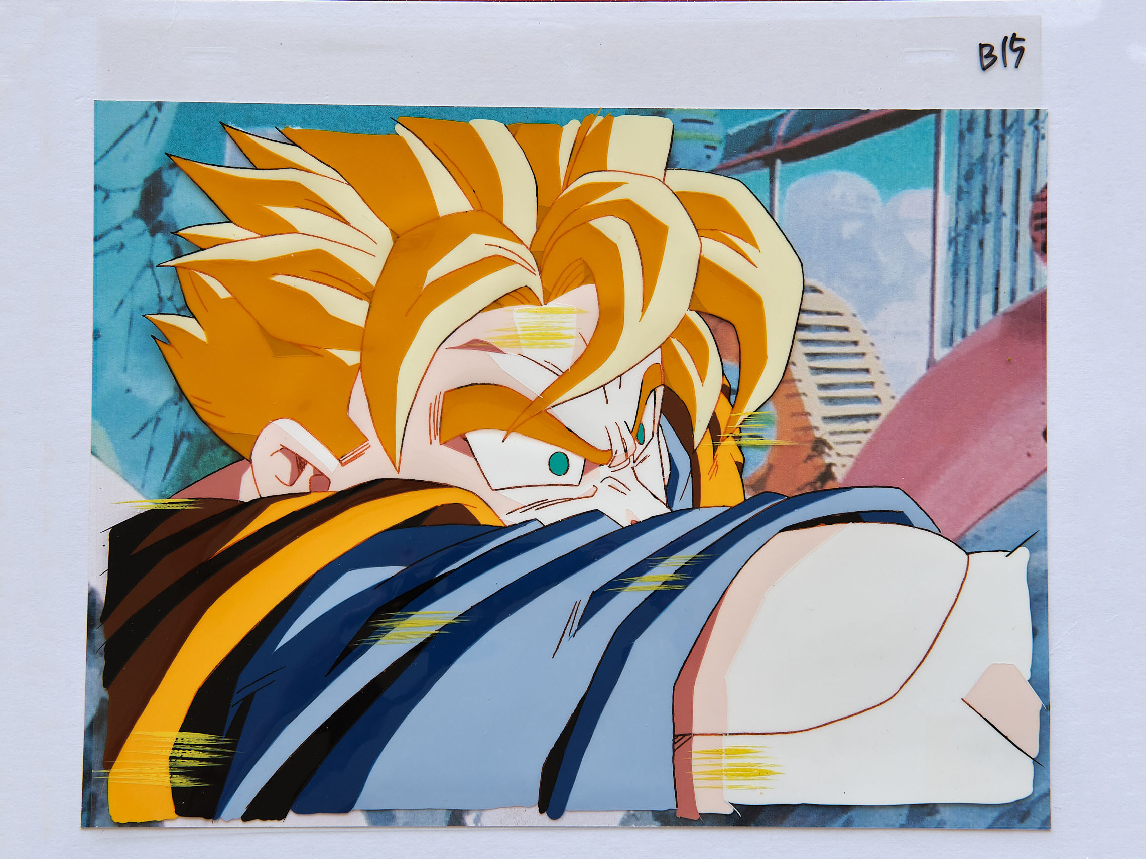 CELLULO A1 Gokû Super Saiyan en armure Saiyan + Décor original DRAGON BALL Z EP 187.