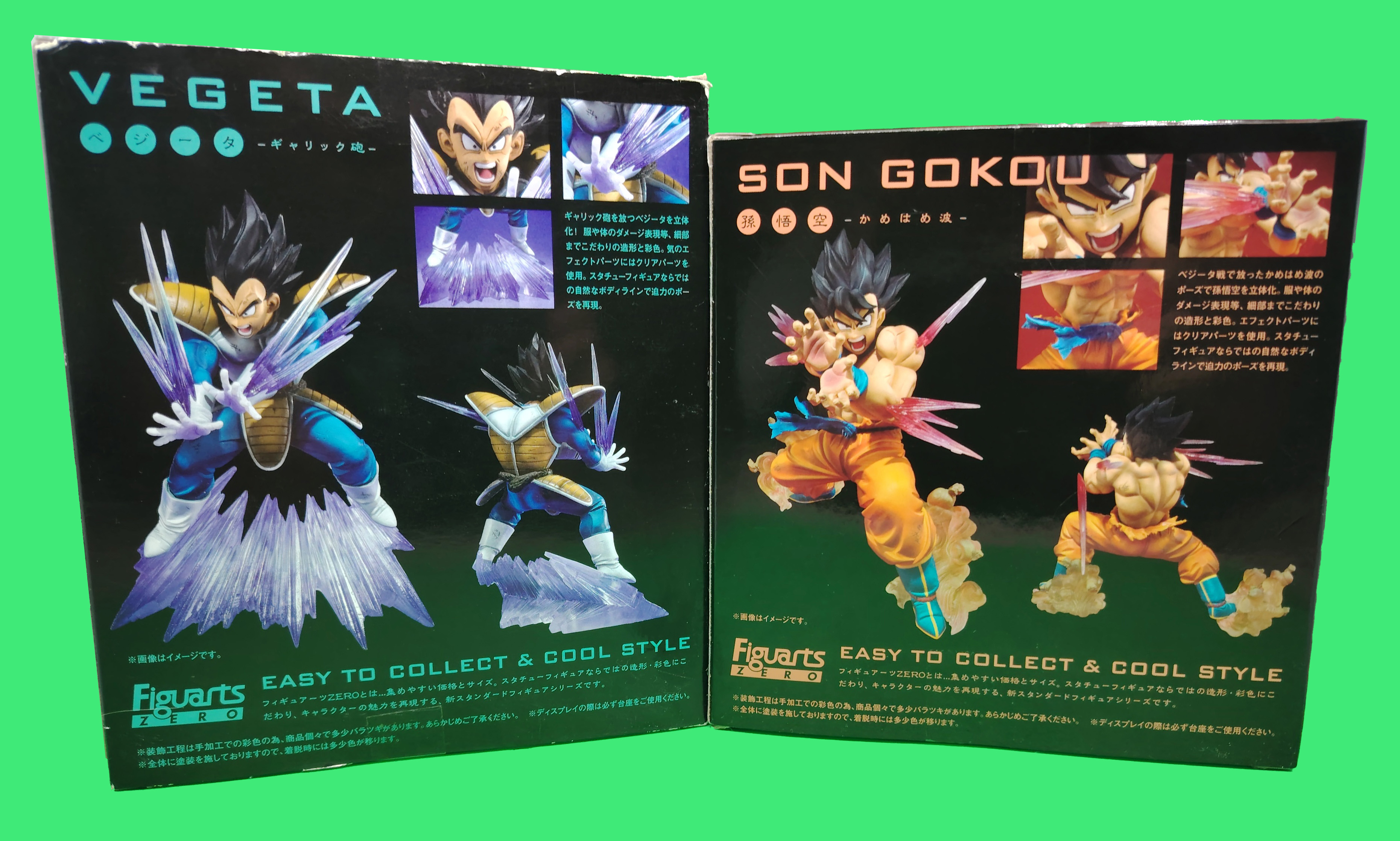 lot de 2 figurines DRAGON BALL Z FIGUARTS ZERO représentant les personnages de VEGETA Cannon Garrick & GOKU Kame Hame Ha, sorties en 2015.