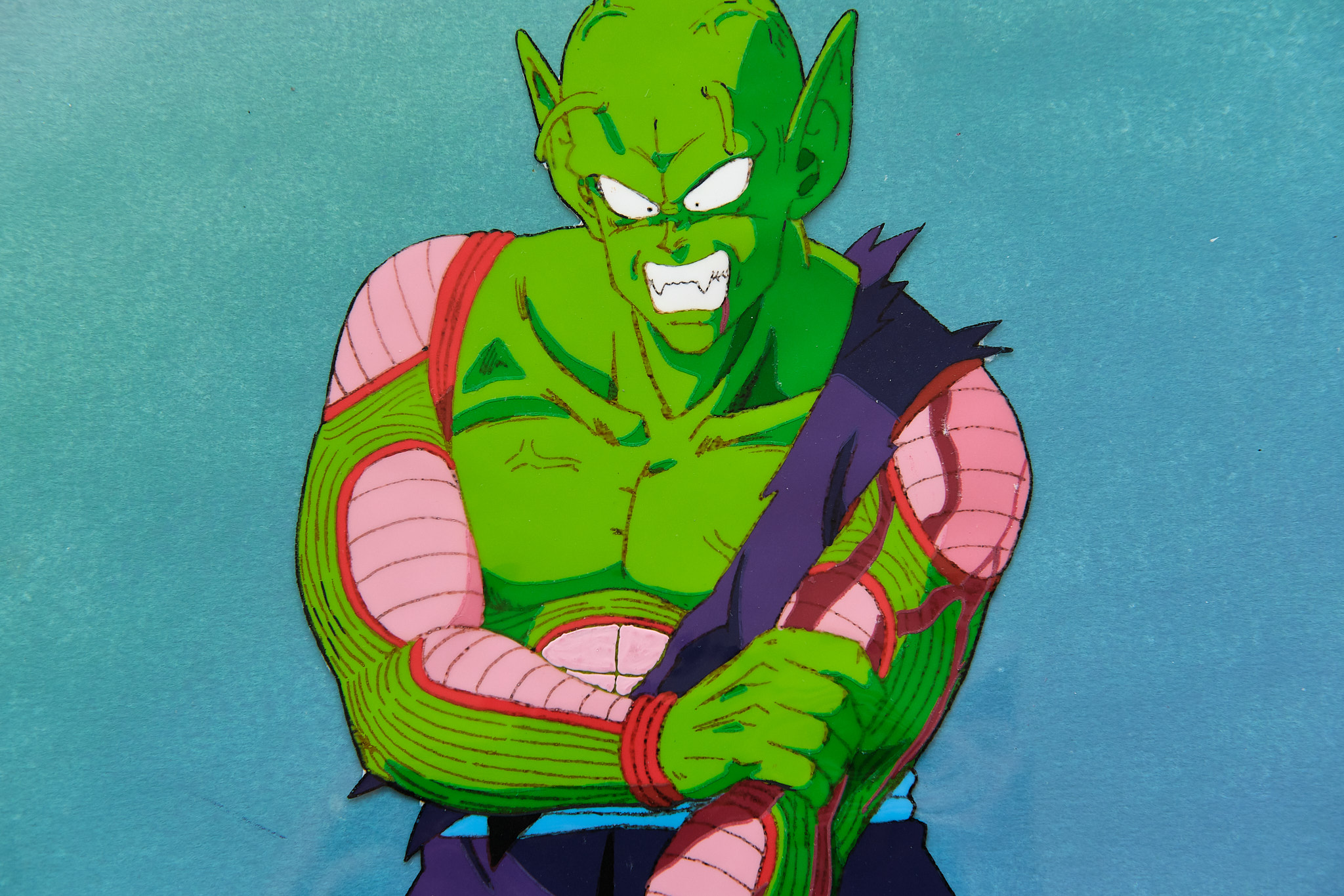 CELLULO Piccolo arrachant son bras + Décor + Douga DRAGON BALL EP 146Cellulo peinture acrylique de DRAGON BALL grand format (35x30cm) de Piccolo arrachant son bras et son décor peint à la main. Le douga (crayonné préparatoire) est également présent. Cette séquence a été réalisée par le célèbre animateur KATSUYOSHI NAKATSURU pour l'épisode 146 de DRAGON BALL.