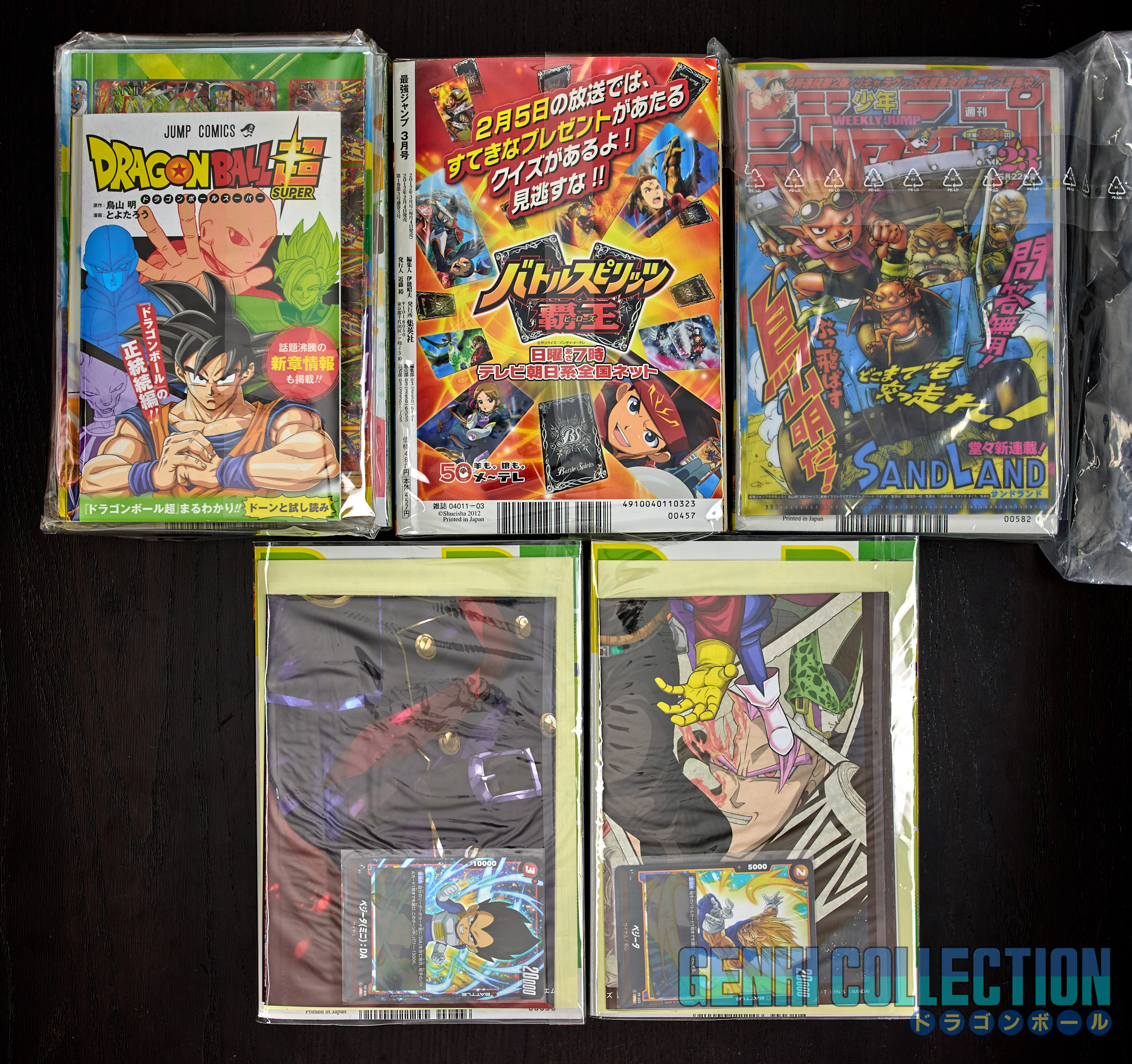 Lot de 5 tomes SAIKYÔ JUMP en très bon état. - Tome de Mars 2012 avec suppléments One Piece te cartes, mais le DVD Episode of Bardock est absent - Tome de janvier 2018 avec tous ses suppléments (cartes et fascicules bonus DBS) - Tome de septembre 2023 avec tous ses suppléments (Clear file Dragon Ball & Sand Land + carte) - Tome de novembre 2024, complet avec carte + poster DB Daima - Tome de décembre 2024, complet avec carte + poster DB Daima.