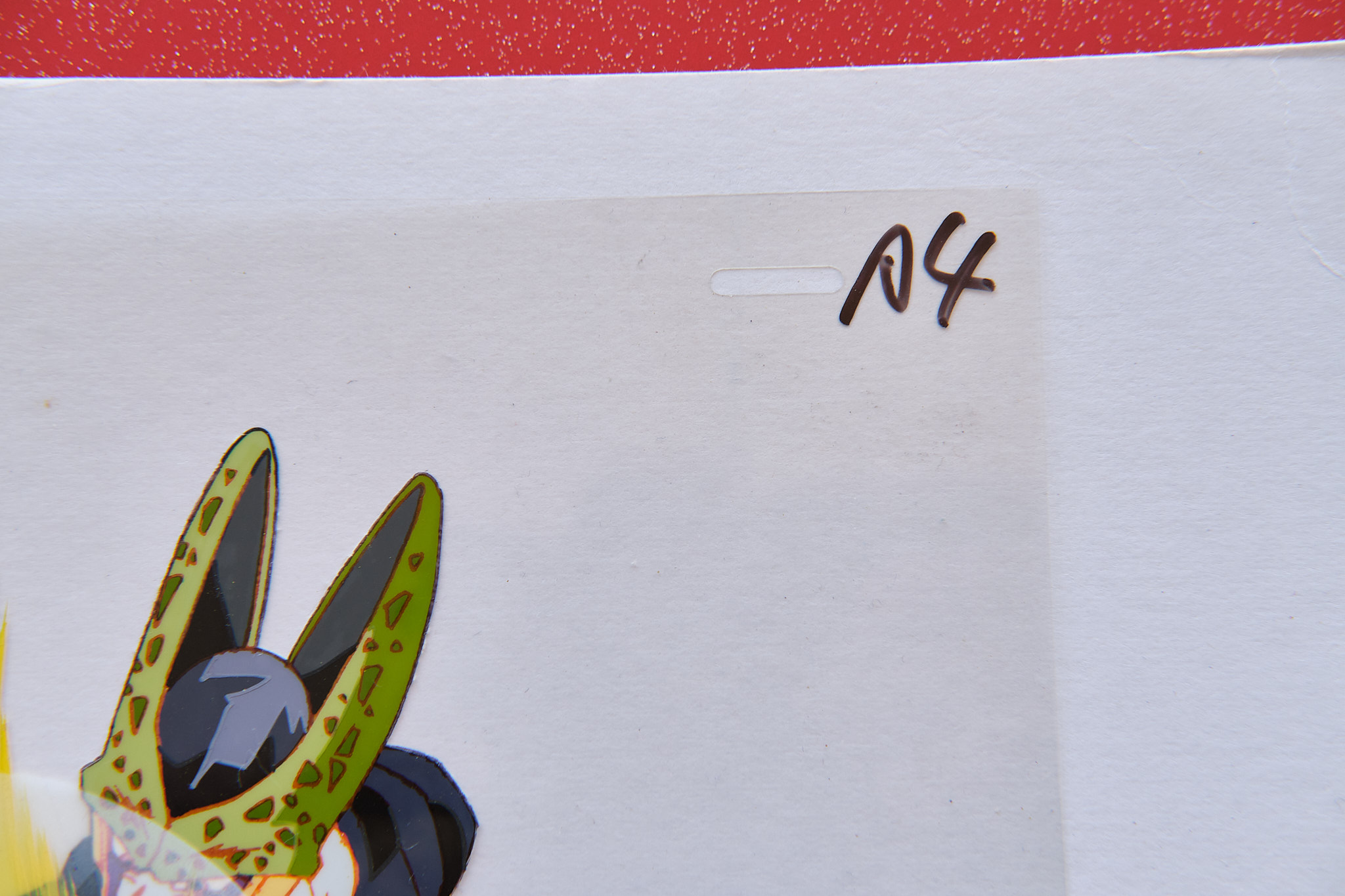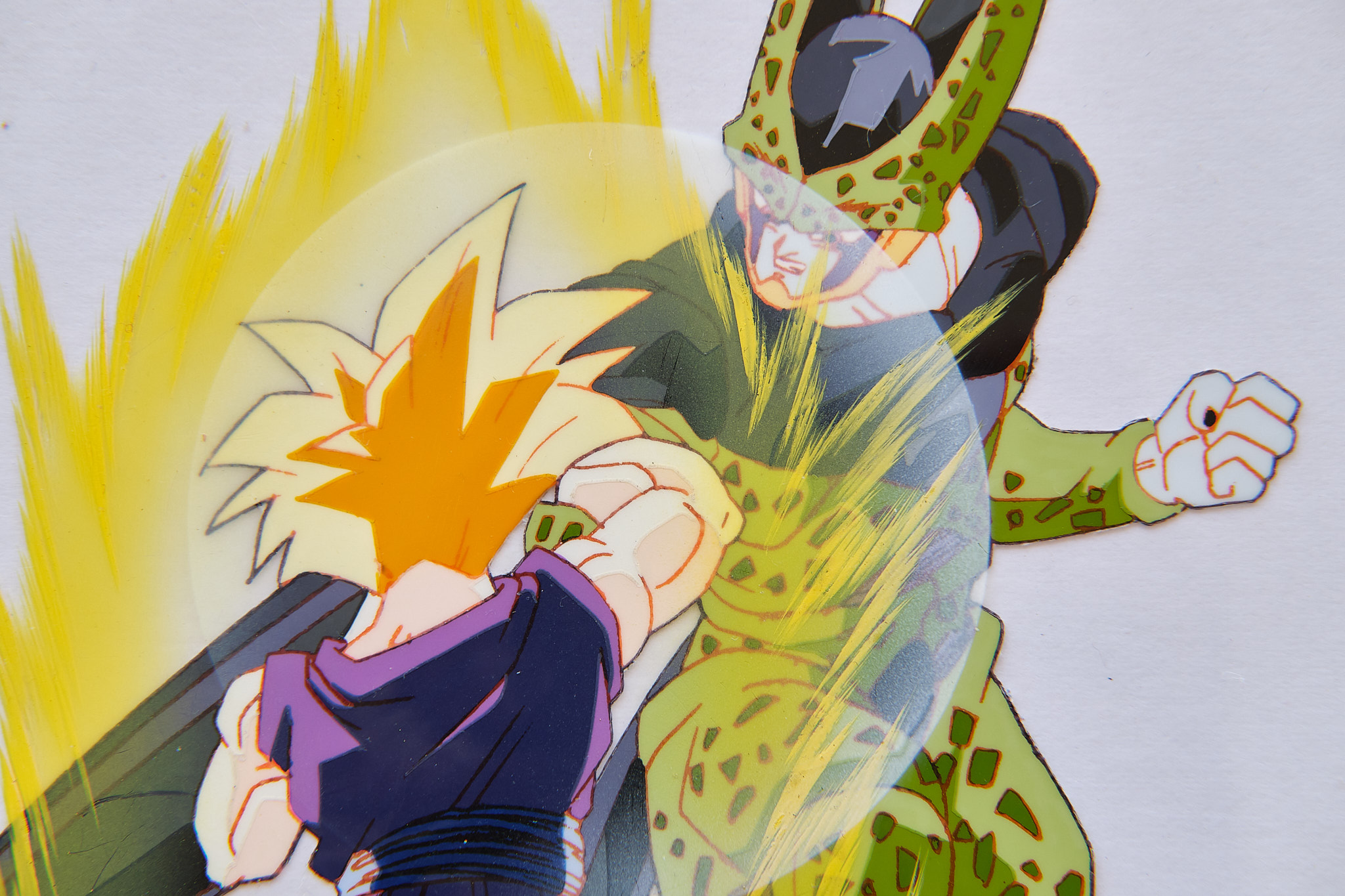 CELLULO Gohan contre Cell + Décor imprimé DRAGON BALL Z EP 181Cellulo peinture acrylique de DRAGON BALL Z au format standard (26,5x22,8cm) de Gohan affrontant Cell avec de superbes effets d'impact et d'aura peints à l'aérographe et son décor en impression jet d'encre. Cette séquence a été réalisée pour l'épisode 181 de DRAGON BALL Z.