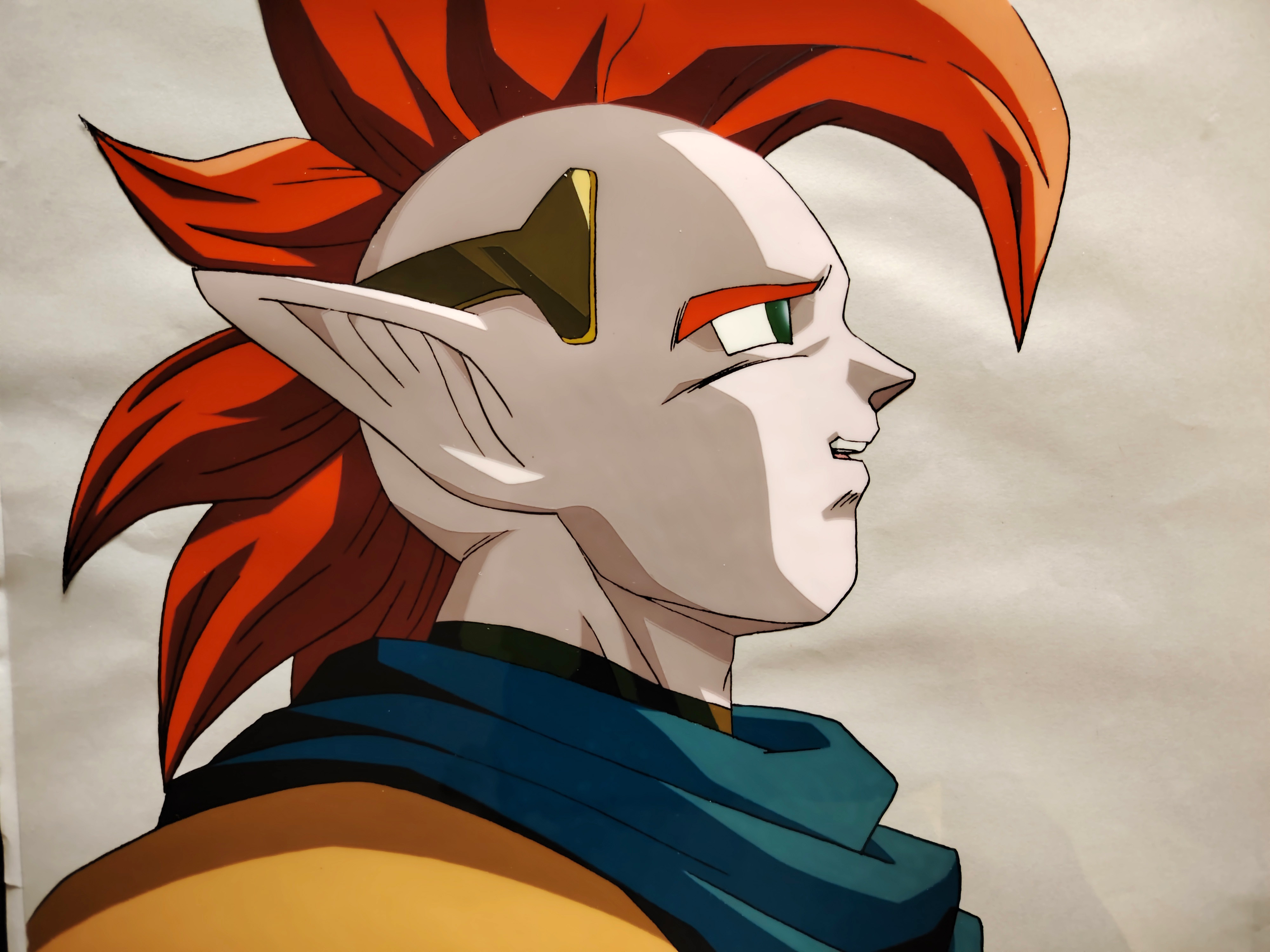 Cellulo Original DRAGON BALL Z à l'encre et à la gouache collé a son douga représentant le personnage de Tapion tiré du film 13 "L'attaque du dragon", "L’Explosion du poing du dragon !! Si Goku n’y arrive pas, qui le pourra ?", "龍拳爆発!!悟空がやらねば誰がやる", produit en 1995 par la toei animation. À noter que le cellulo est en tres bon état, sans line fading ! les ondulation ou froisement sur la photo sont du au douga collé.