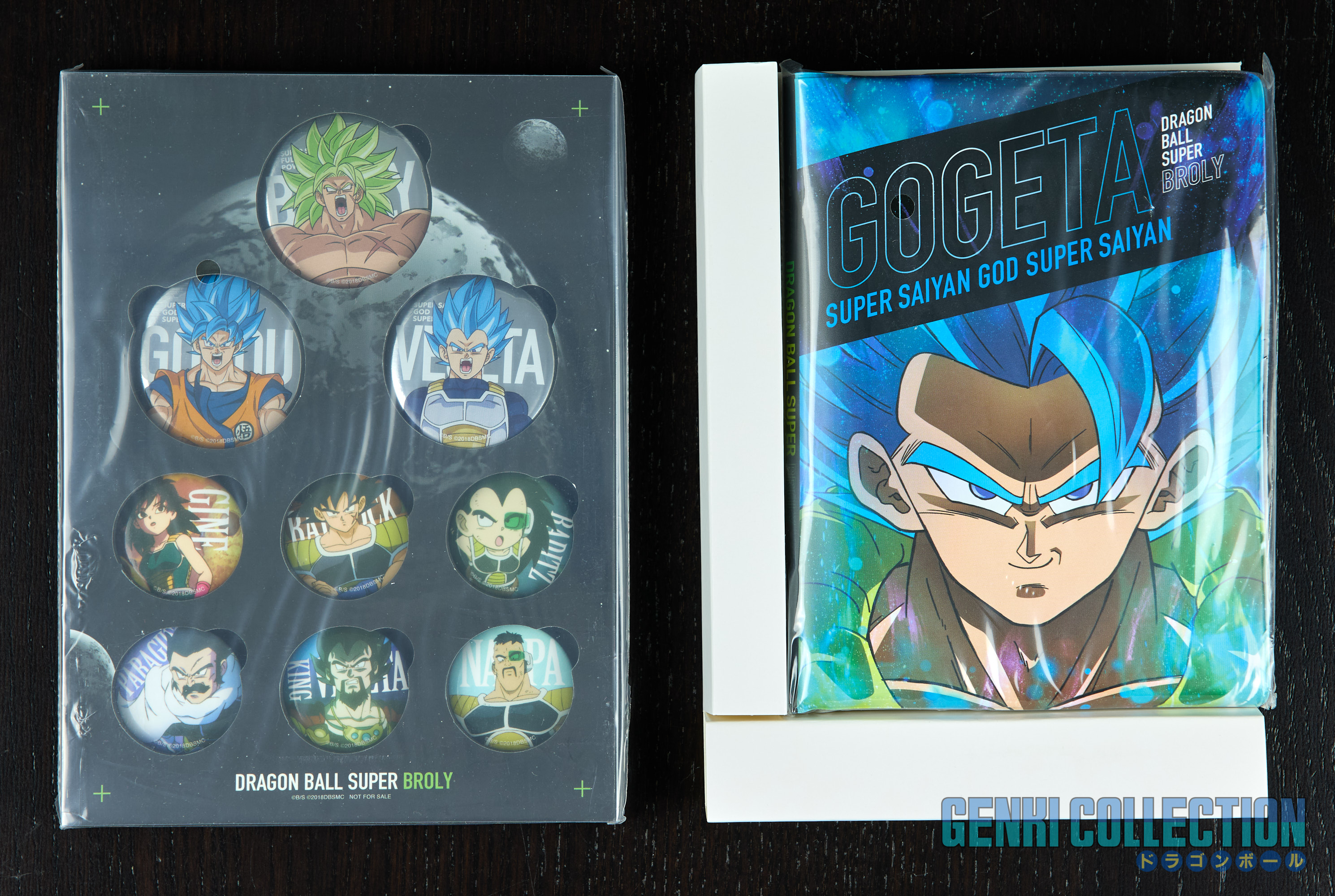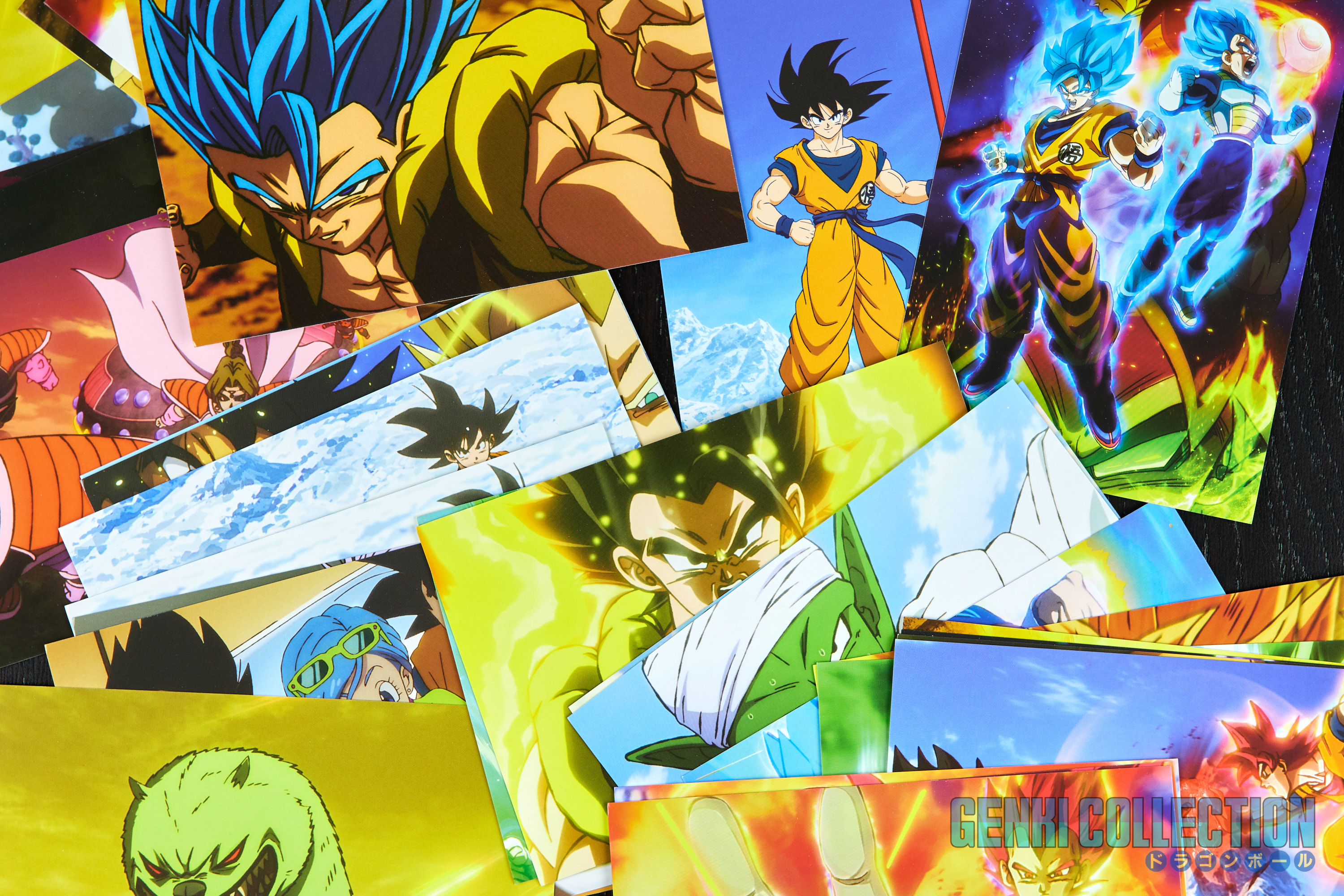 Coffret collector japonais DRAGON BALL SUPER BROLY incluant le film en Blu-ray et DVD, ainsi que tous ses objets bonus : un lot de 9 badges, 32 cartes postales du film avec un classeur de rangement, de nombreux flyers publicitaires, un livret sur le film et un support photo en forme de Scouter exclusif limité aux précommande sur Amazon Japan, ainsi qu'un chiffon exclusif. Tout est en excellent état.