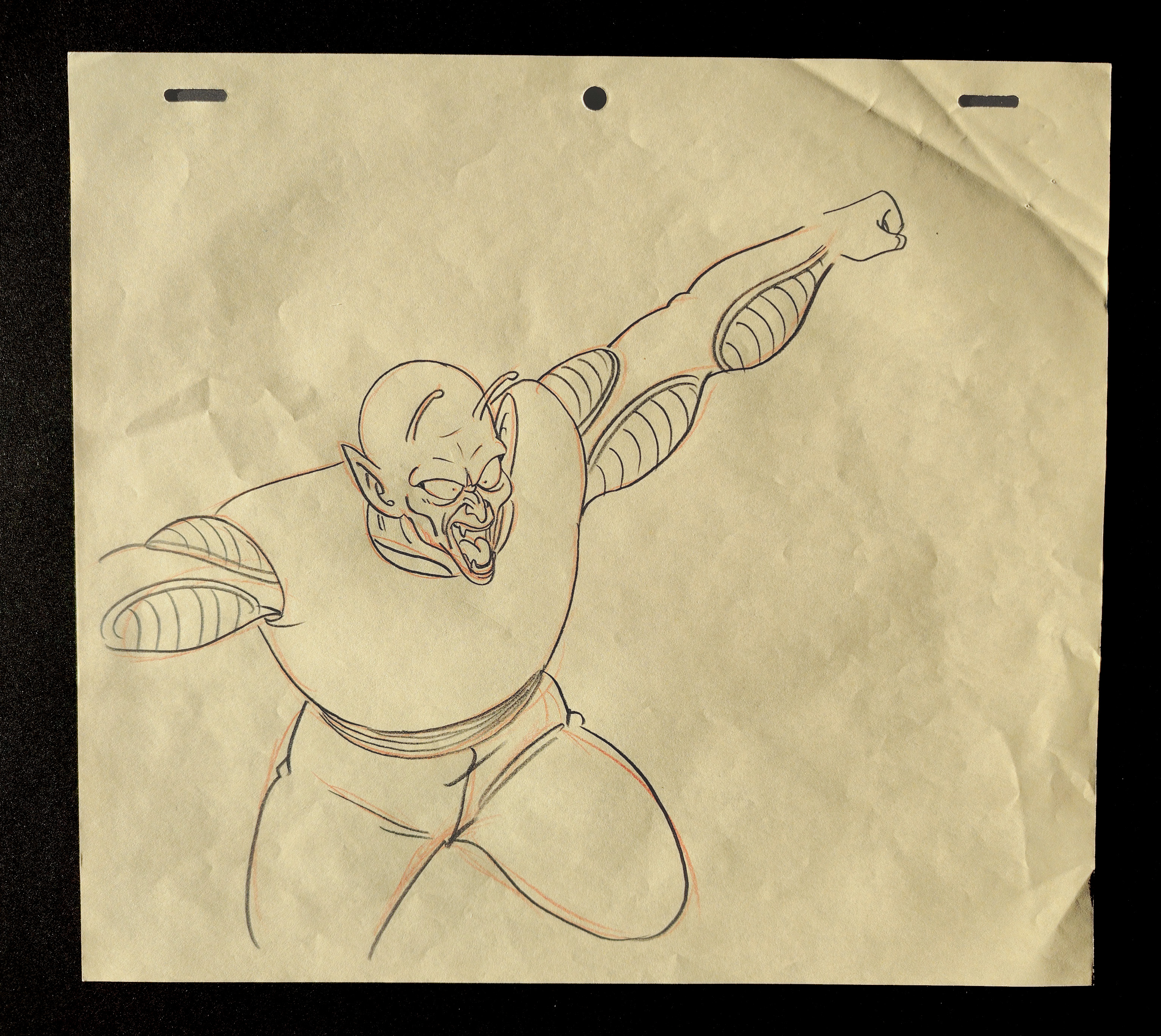 Lot comprenant 2 corrections, un Genga partiel à la mine de plomb et au crayon de couleur et une copie de layout représentant Piccolo Daimaô contre Goku et tirés de l'épisode 120 de DRAGON BALL : "Goku : Colère à pleine puissance !!", " 悟空・怒りのフルパワー" et produits en 1988 par Toei animation. Directeur de l'animation : Masayuki Uchiyama.