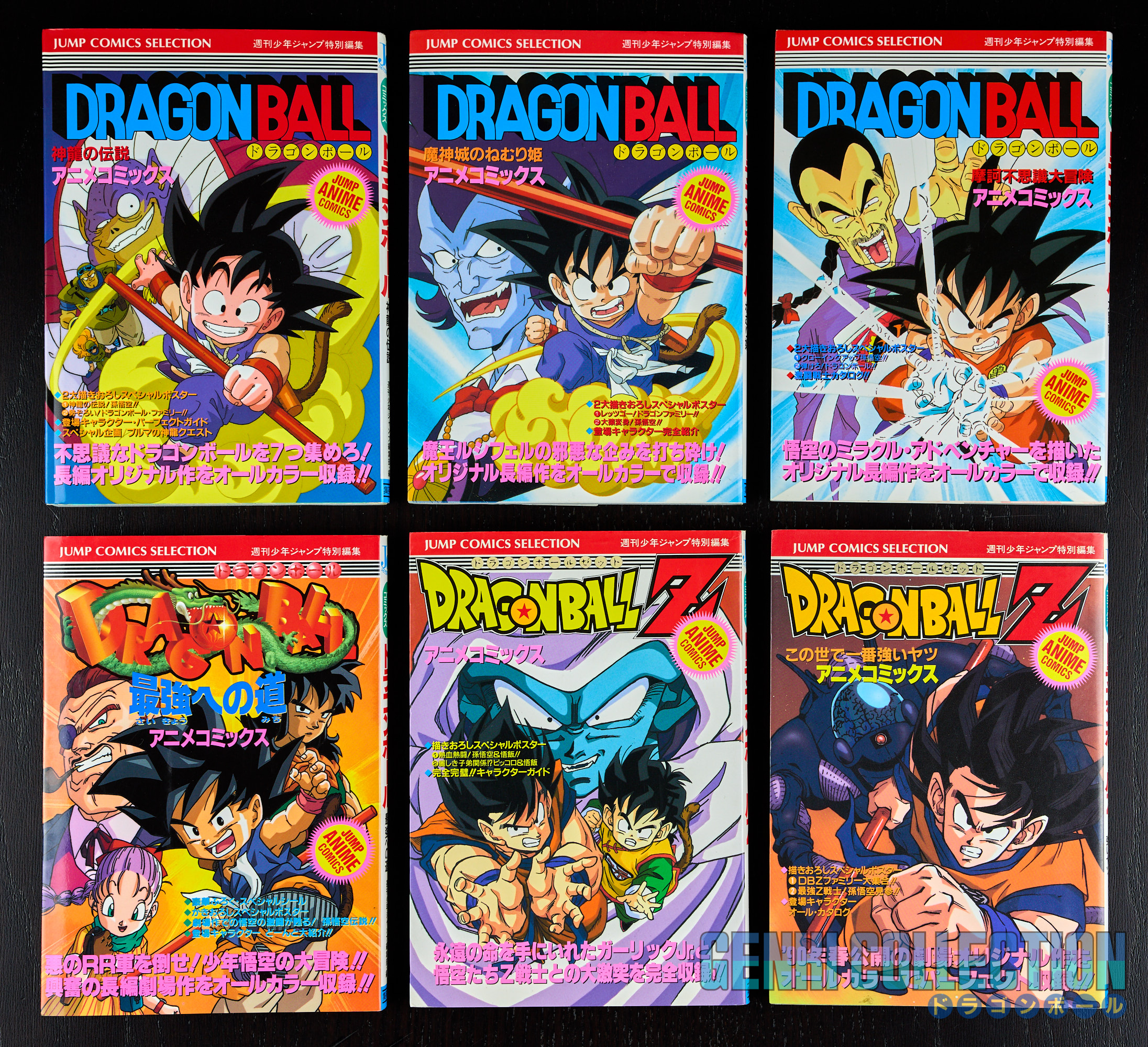 Lot de 24 tomes japonais JUMP ANIME COMICS reprenant les 4 films Dragon Ball, 13 films Dragon Ball Z, 2 téléfilms Dragon Ball Z, un téléfilm Dragon Ball GT, 2 Perfect Files Dragon Ball GT, un OAV DRAGON BALL Z (JSAT) et un film DRAGON BALL SUPER (Broly). La majorité des tomes sont en 1ère édition, excepté les films Z 3 (2ème édition), Z 5 (6ème édition), Z 6 (3ème édition), Z 11 (2ème édition), TV SP Z1 (2ème édition), DBS Broly (2ème édition). La majorité des tomes sont en excellents état avec deux ou trois tomes en état un peu moins bons. LE JSAT et DBS Broly ont tous les deux leur OBI. Tous les "Jump Comics Selection" des fims Dragon Ball et Dragon Ball Z contiennent leur poster recto-verso "tryptique" et les 3 JCS de Dragon Ball GT et le 4ème film de Dragon Ball ont leur planche d'autocollants. Tous les tomes sont protégés dans un cellophane autocollant.