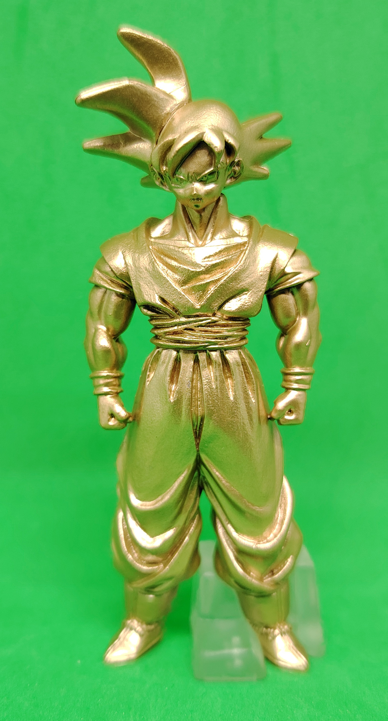 lot de 4 Gashapons Dragon Ball Z HG partie 20-I version gold sortie en 2009 par Bandai, représentant les personages de Gohan, Krilin, Trunks et Goku, reprenant la posture du generique.