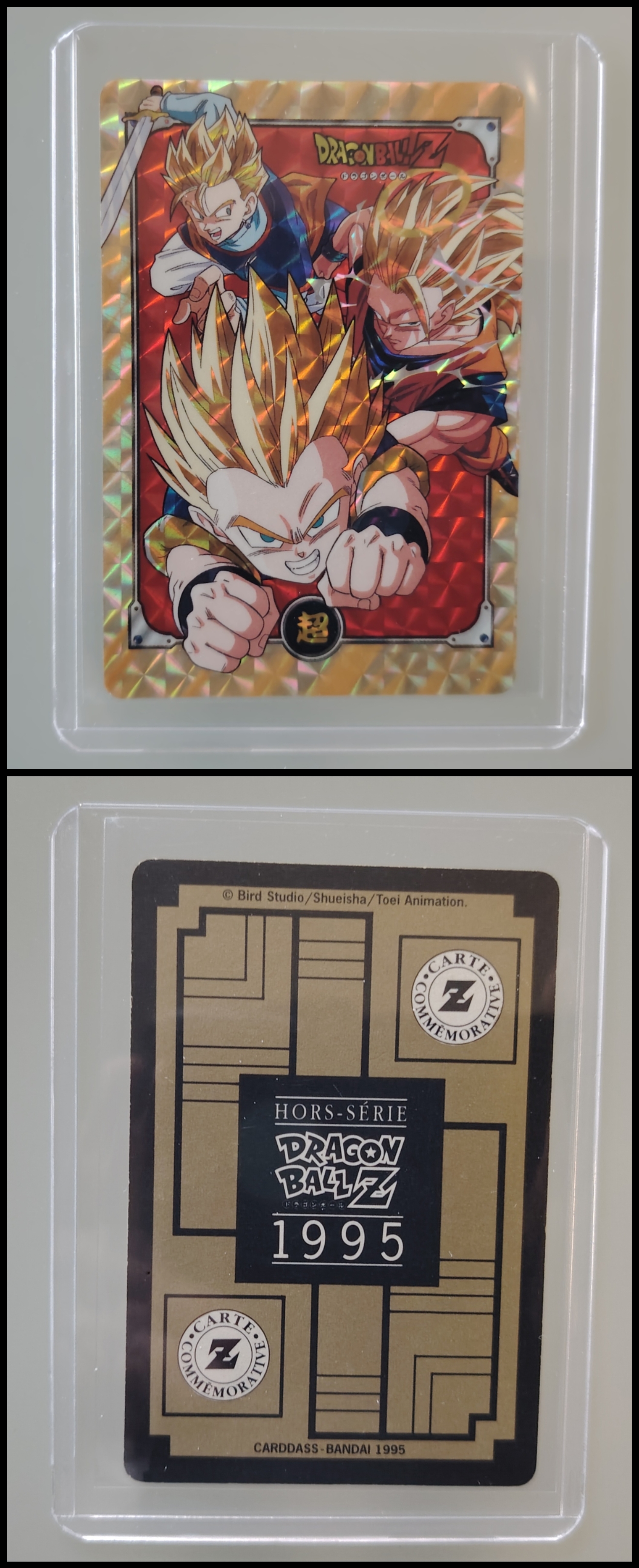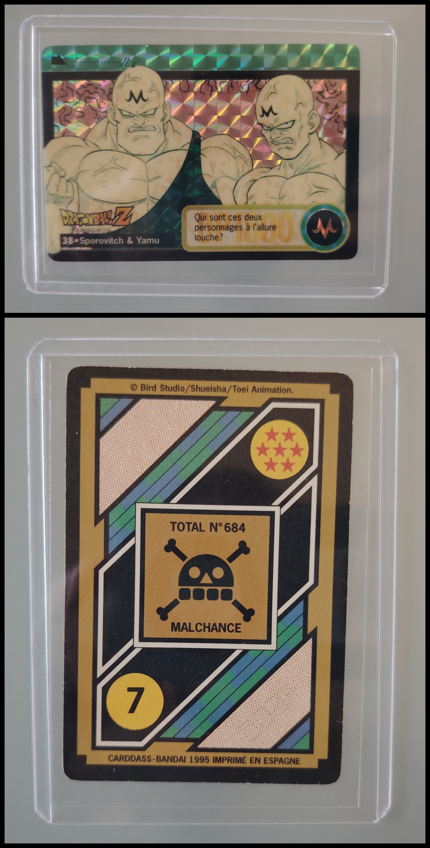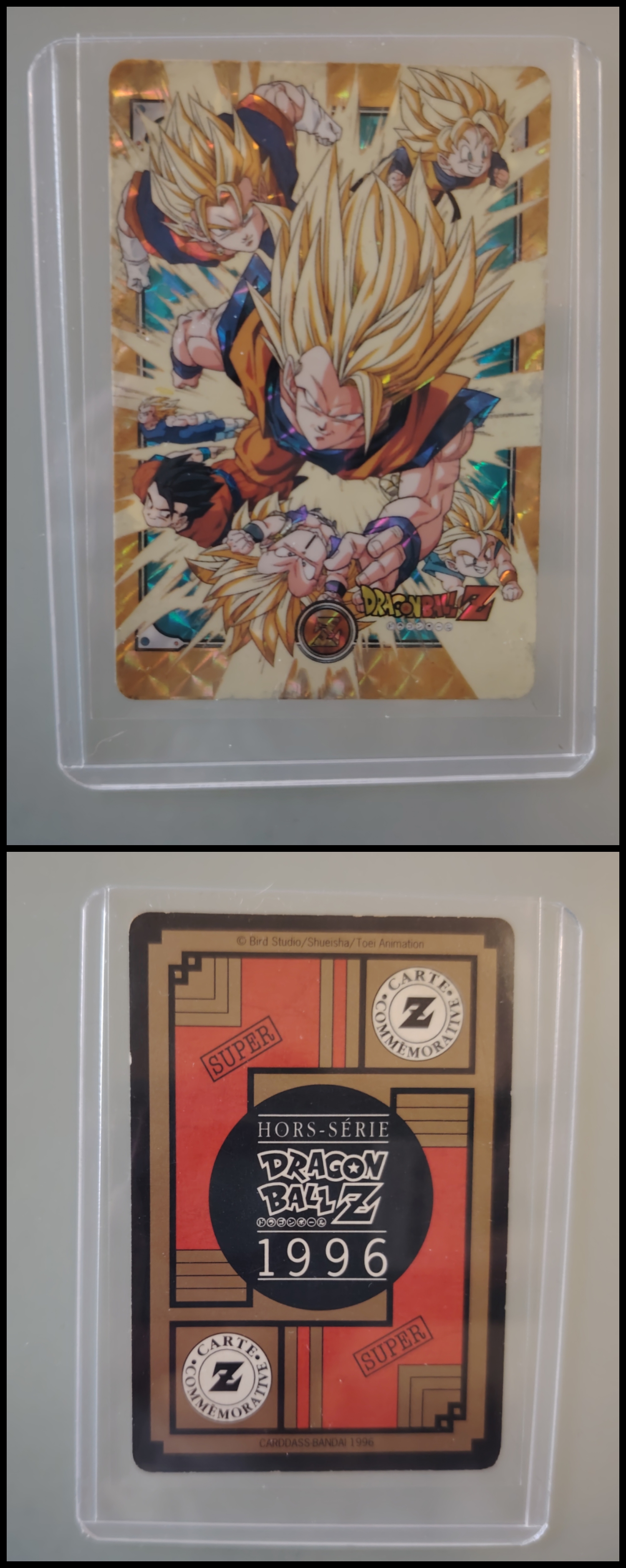 Lot de 247 cartes des séries françaises Carddass et Le Grand Combat (1995 à 1998) + 7 boosters vides + 1 classeur + 1 pocket box + 1 mini classeur, dont voici le détail : - Lot de 36 cartes Carddass Hondan part 16 : HS, 1, 2, 3, 4, Héro : 1, 2, 3, 4, 5, 6, 7, 8, 9, 620, 622, 623, 624, 626, 627, 628, 631 (prism), 632 (prism), 633, 634, 635, 636, 637, 638, 639, 640, 641, 642, 643, 644, 645, année 1995. - Lot de 34 cartes Carddass Hondan part 17 : 5, 6, 7, 9, 10, 12, 13, 14, 15, 16, 18, 19, 20, 21, 22, 23, 24, 25, 26, 27, 28, 29, 30, 31, 32, 33, 34,35, 37, 38 (prism état moyen), 39, 40, 41, 42, année 1995. - Lot de 34 cartes Carddass Hondan part 20 : 127, 128, 129, 131, 132, 133, 134, 135, 136, 137, 138, 139, 140, 141, 142, 144, 145, 146, 147, 148, 149, 150, 152, 153, 156, 157, 158, 160, 161, 162, 163, 164, 165, 166 Année 1996. - Lot de 32 cartes Le Grand Combat part 2 : 485 (Prism), 486, 487, 488, 489, 490, 494, 2 cartes 496 (double prism + face B), 497, 499, 501, 502, 504 507 (prism face B), 508, 509, 511, 512, 514, 515, 516, 517, 518 (prism état moyen), 520, 521, 522, 523, 524, 525, 526 (prism face B état Moyen), 528, année 1996. - Lot de 6 cartes Le Grand Combat part 3 : 540 (Prism), 551(Prism face B), 531, 555, 566, 572, année 1996. - Lot de 25 cartes Le Grand Combat part 4 : HS (état moyen), 575, 576, 578, 580, 582, 583, 586, 587 Prism (Face A / B décollées), 588, 590, 591, 592, 595 (Prism), 599, 601, 604, 606 (Prism), 607, 608, 610, 611, 614, 616, année 1996. - Lot de 10 cartes Le Grand Combat part 5 : 630, 633, 638, 642, 643, 646, 649, 651, 654, 656, année 1996. - Lot de 9 cartes Le Grand Combat part 6 : 668, 677, 684, 686, 688, 691, 693, 698, 703, année 1997. - Lot de 14 cartes part 7 : 710, 711, 712, 717, 721, 722, 723, 728, 729, 735, 736, 740, 746, 747, année 1997. - Lot de 36 cartes Le Grand Combat part 8 : 750, 751, 752, 753, 754, 755, 756, 757, 759, 761, 762, 763, 765, 766, 767, 768, 769, 772, 773, 774, 775, 776, 777 (Hidden Prism), 778, 779, 780, 781, 783, 784, 785, 786, 787, 788, 789, 791, 792, année 1998. - Lot de 11 cartes Le Grand Combat part 9 : 808, 809, 810, 812, 816, 823, 824, 825, 828, 831, 834, année 1998. - Lot de 7 boosters vides Carddass Hondan part 2, 4, 5, 6, 7, 9. - 1 Classeur avec 6 feuilles de rangement de la part 5 de 1996. - 1 boîte pocket Carddass. - 1 mini classeur dépliants. État : Bon état général sauf si mention, chaque cartes est protégées dans une sleeve + toploader. Ce dernier peut éventuellement avoir des traces ou des micros poussières. Veuillez consulter la vidéo pour avoir davantage de visuels, n'hésitez pas a me contacter si vous avez besoin de photos complémentaires.