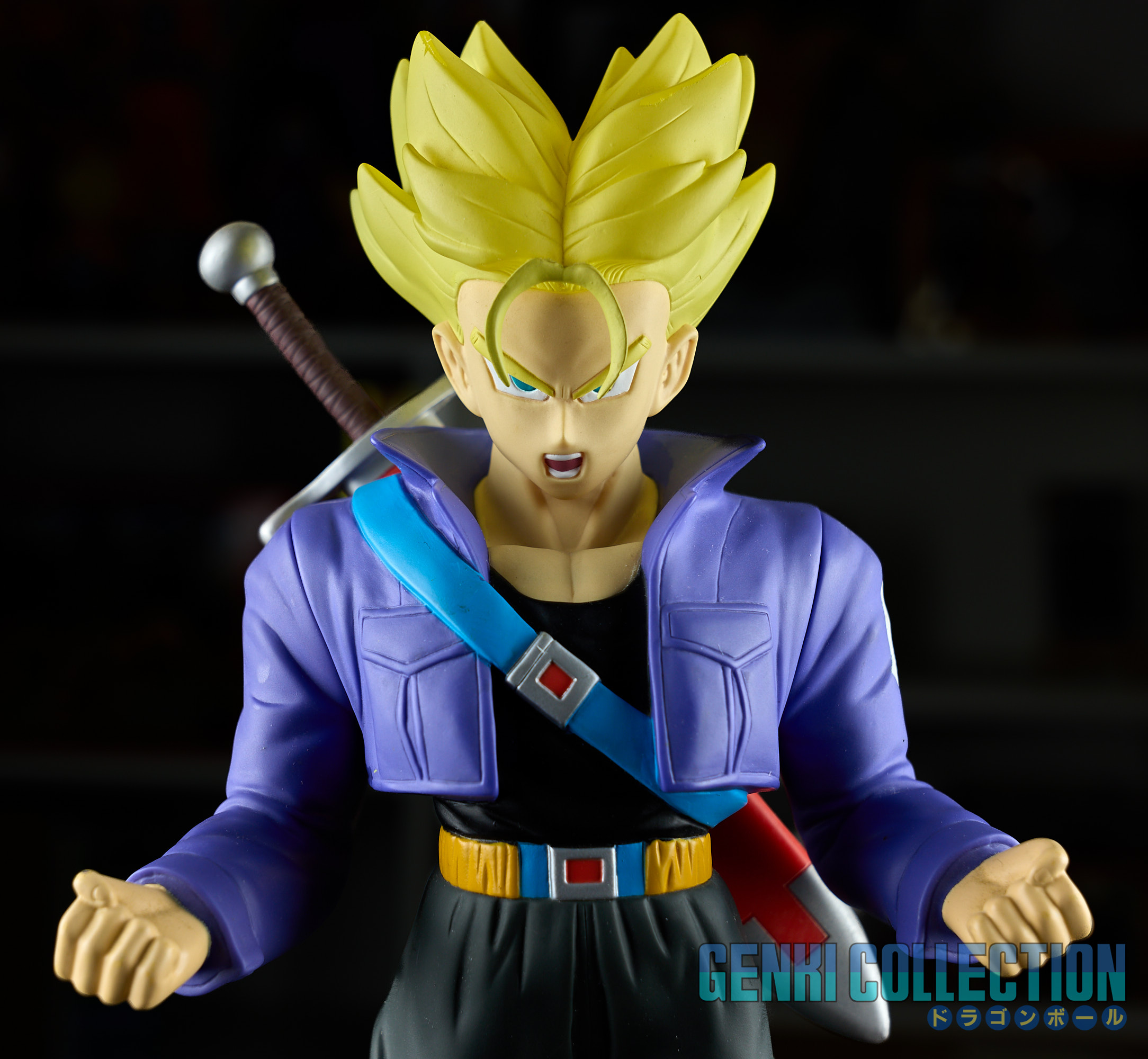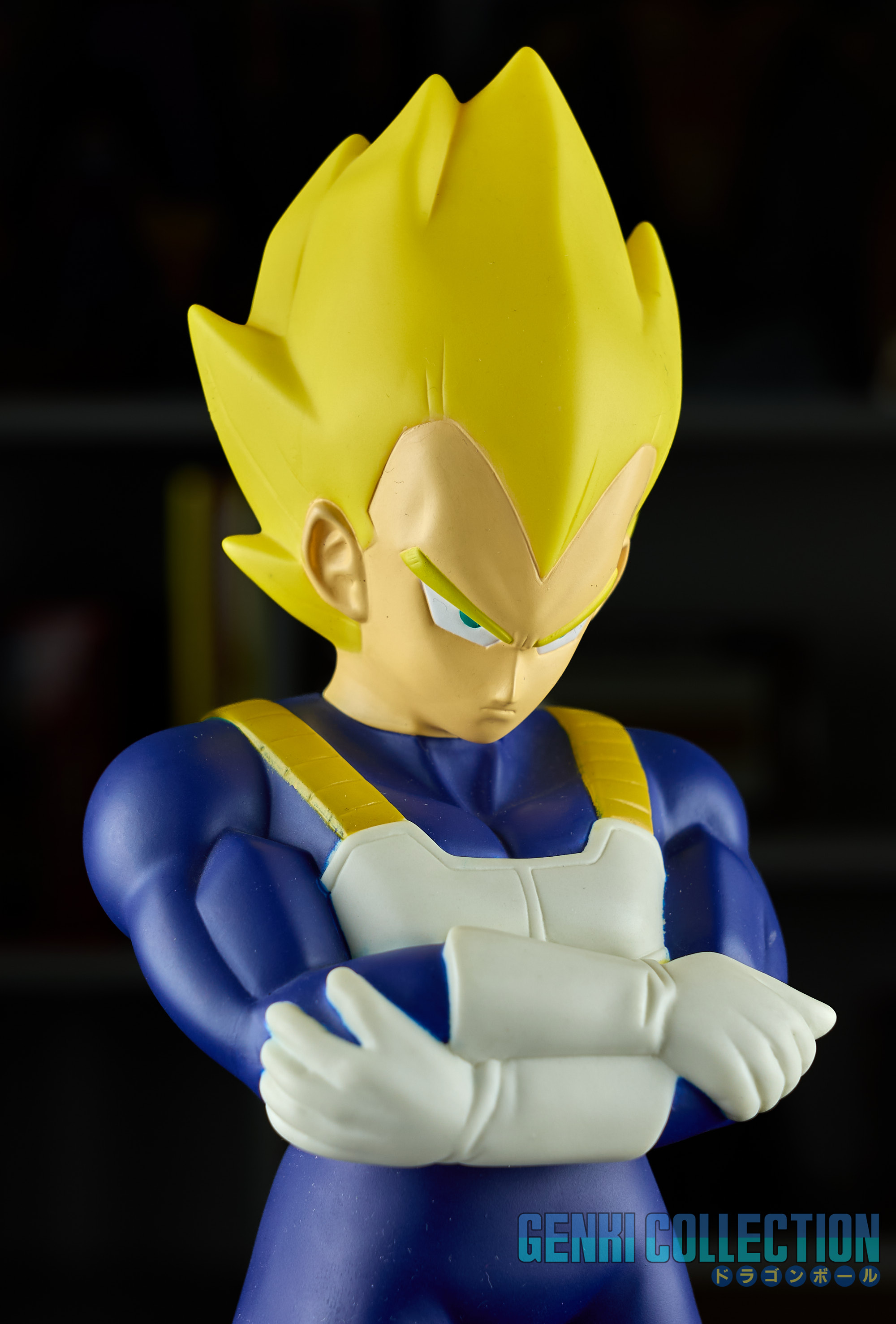 Lot de 5 figurines en vinyl d'environ 30 cm "Big Sofbi" sortie en 2003. Gokû Super Saiyan, Vegeta, Vegeta Super Saiyan, Trunks et Piccolo. Bon état avec quelques petits défauts estéhtiques, fournies avec leur socle (facultatifs à utiliser).