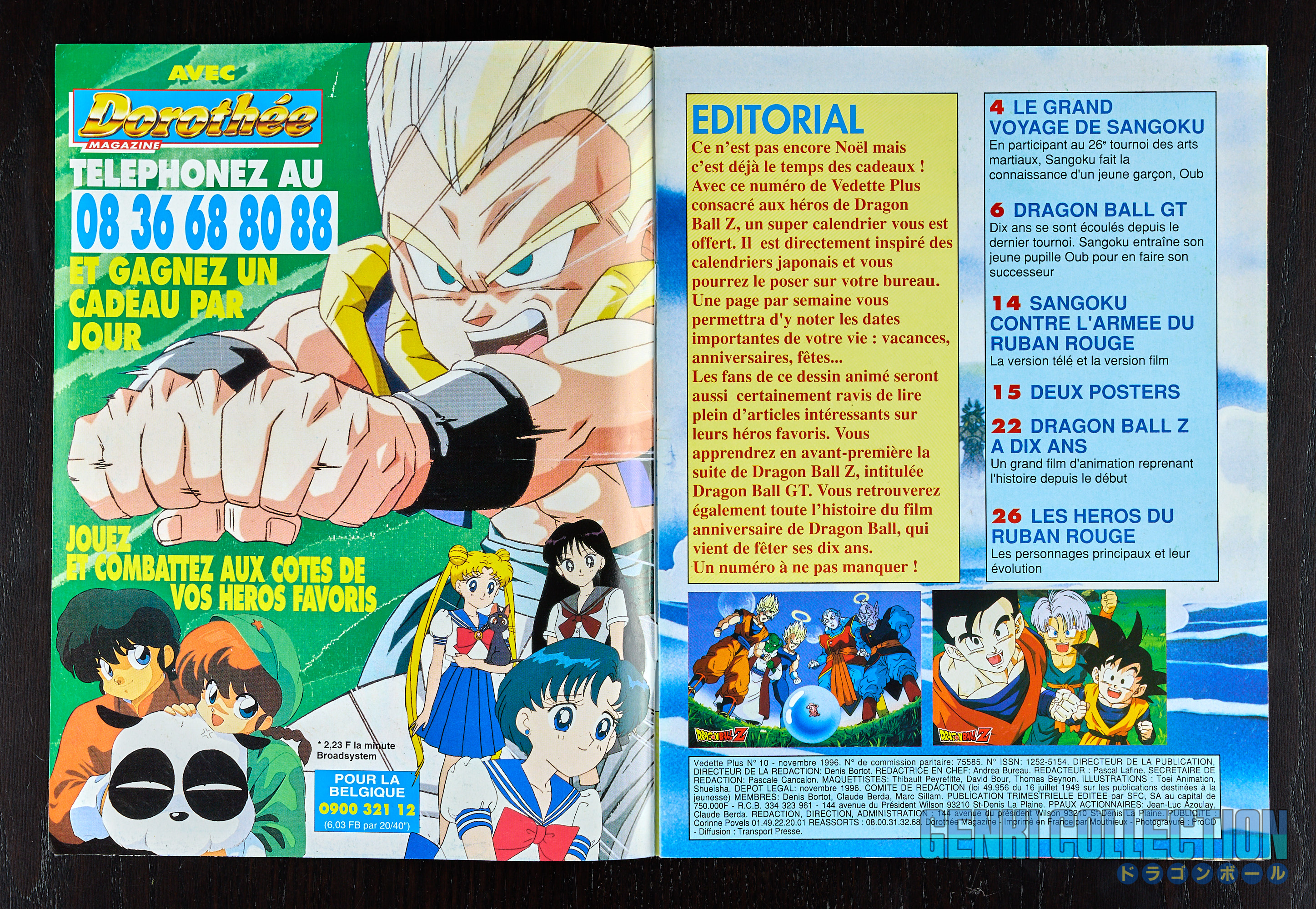 Magazine Vedette Plus de novembre 1996 en français sur Dragon Ball avec son calendrier 1997 inclus. Ce dernier contient une page par semaine, pour un total de 54 feuillets sous blister faisant office de présentoir. Bon état général, poster du magazine absent.