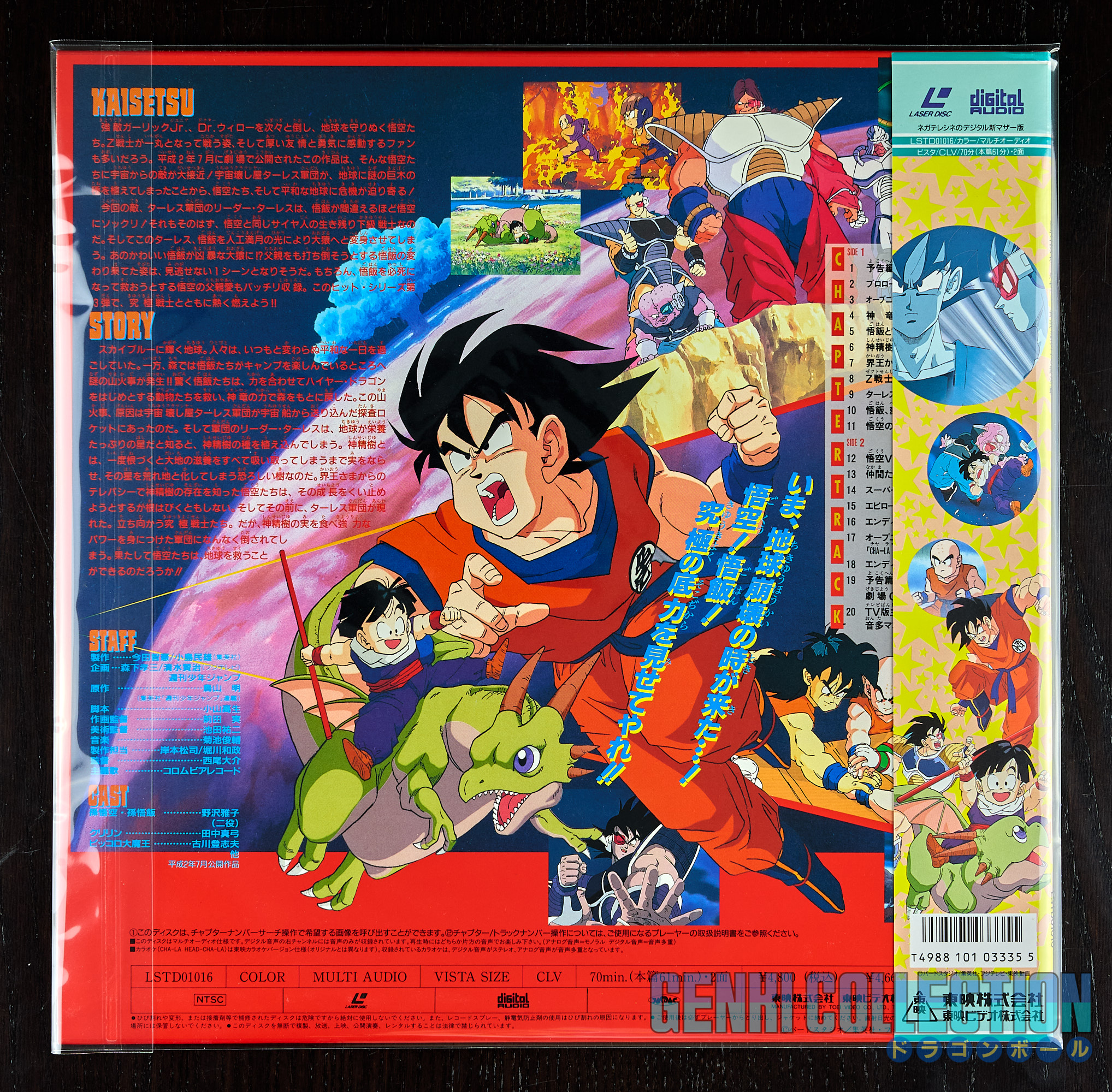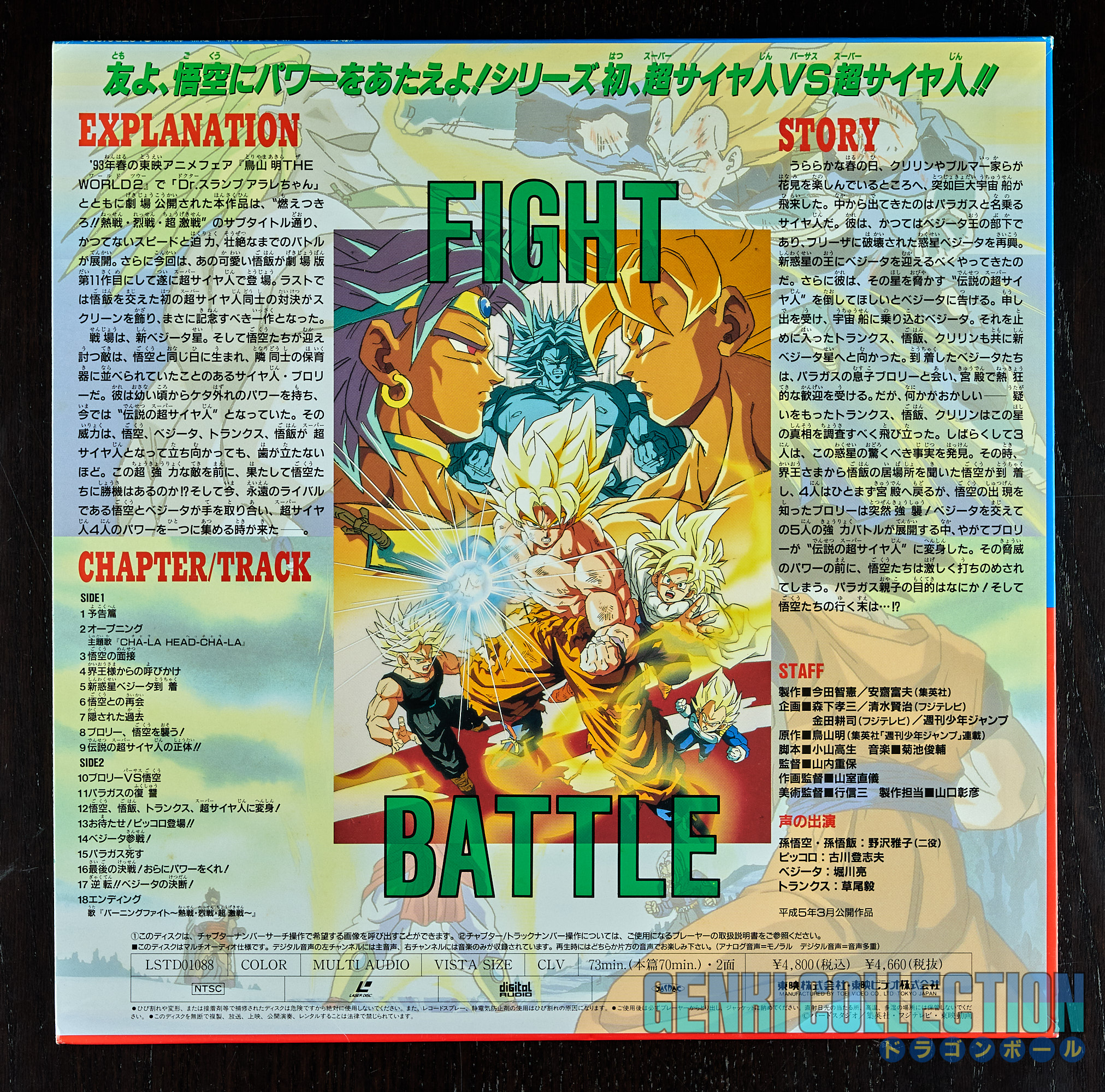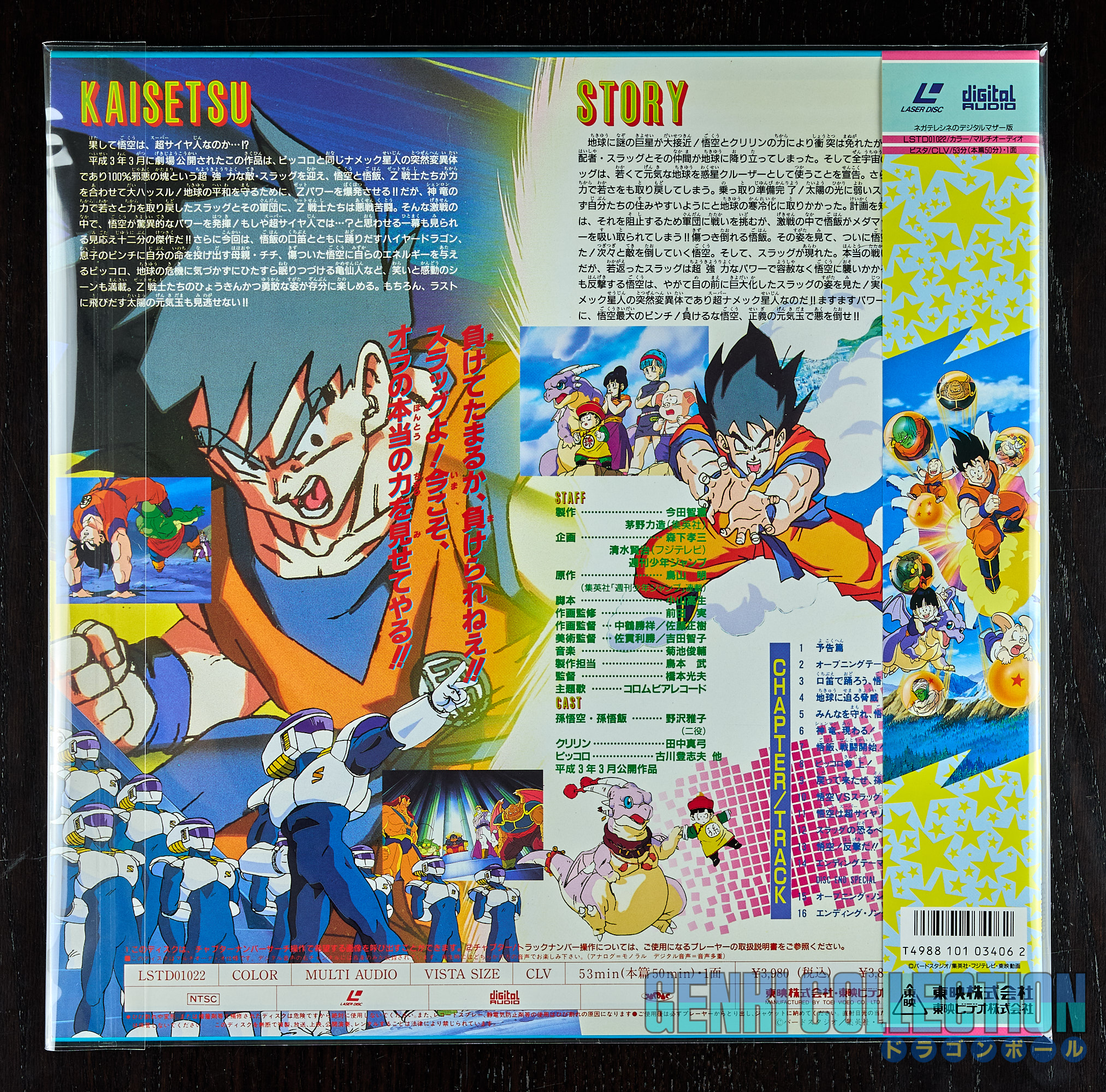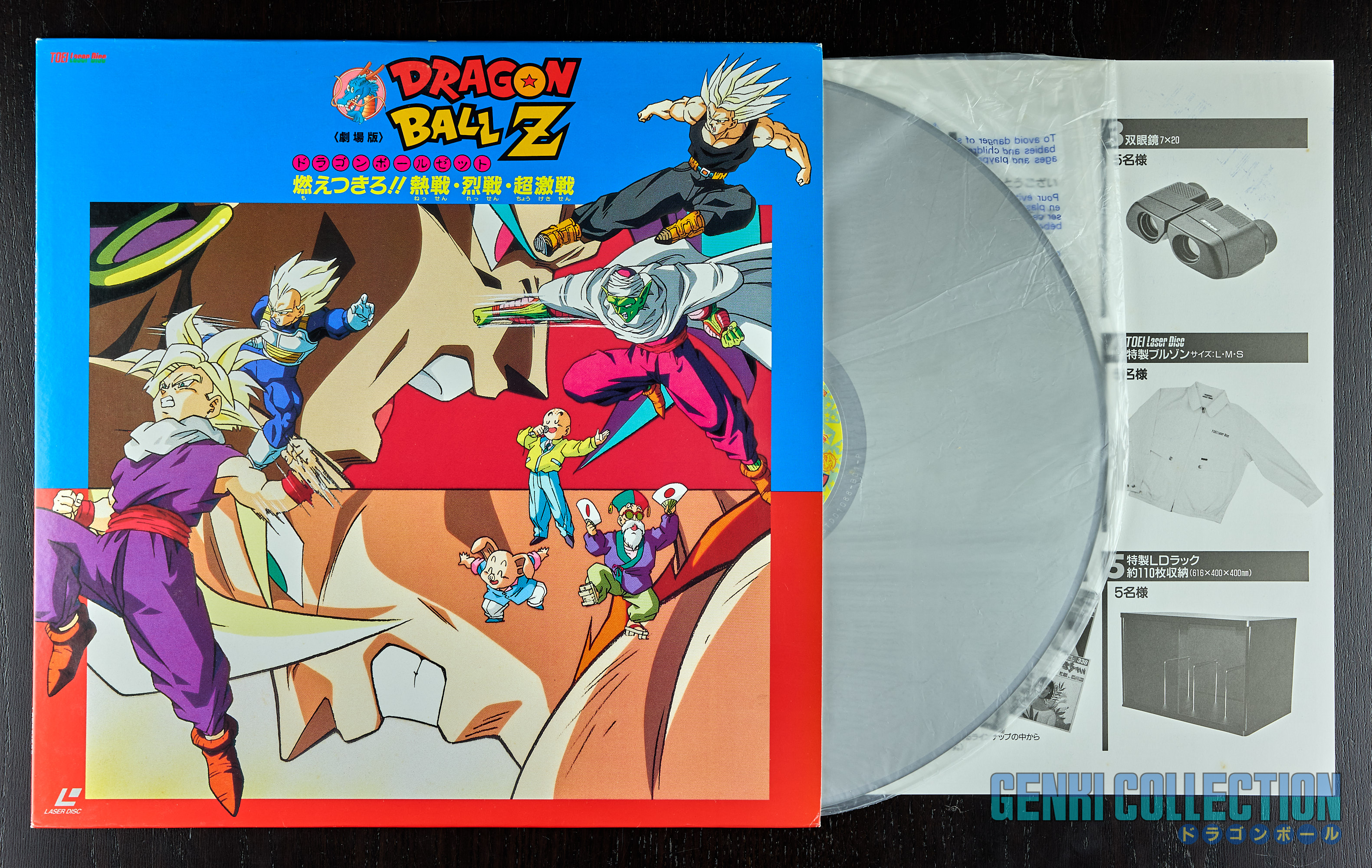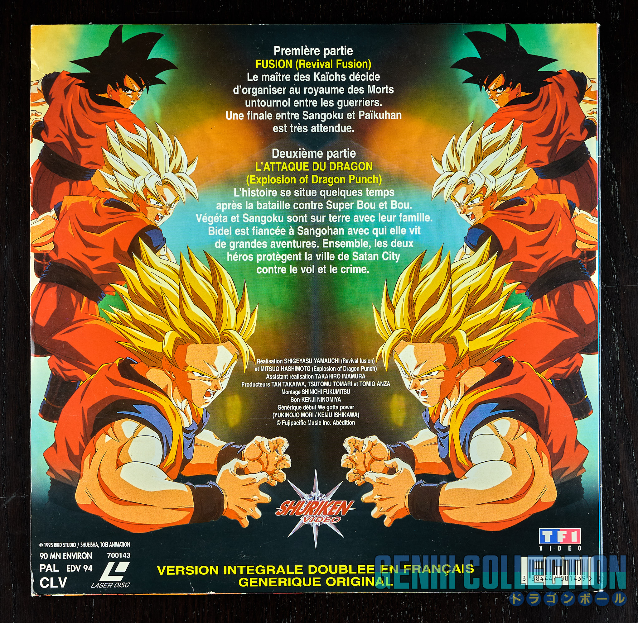 Magnifique set complet de 14 laserdiscs des films Dragon Ball & Dragon Ball Z japonais, complets avec obi ainsi que 2 laserdiscs des films français dont un scellé sous blister. Tous les laserdiscs ont été protégés sous sleeve. Voici le détail : - Dragon Ball Z avec obi en très bon état(1991) - Dragon Ball Z "Kono Yo De Ichiban Tsuyoi Yatsu" avec obi en très bon état (1992) - Dragon Ball Z "Chikyū Marugoto Chō Kessen" avec obi en très bon état (1992) - Dragon Ball Z "Sūpā Saiyajin Da Son Gokū" avec obi en très bon état (1992) - Dragon Ball Z "Tobikkiri No Saikyō Tai Saikyō" avec obi en très bon état (1992) - Dragon Ball Z "Gekitotsu!! Hyaku Oku Pawā No Senshi Tatchi" avec obi en très bon état mais très léger plis dans un coin (1992) - Dragon Ball Z "Kyokugen Batoru!! San Dai Sūpā Saiyajin" avec obi en très bon état (1993) - Dragon Ball Z "Moetsukiro!! Nessen, Ressen, Chō Gekissen!!" avec obi en très bon état (1993) - Dragon Ball Z "Ginga Giri Giri!! Butchigiri No Sugoi Yatsu" avec obi en très bon état (1994) - Dragon Ball Z "Kiken Na Futari! Sūpā Senshi Wa Nemurenai" avec obi en très bon état (1994) - Dragon Ball Z "Sūpā Senshi Gekiha!! Katsu No Wa Ore Da" avec obi en très bon état (1995) - Dragon Ball Z "Fukkatsu No Fyūjon!! Gokū To Bejīta" avec obi en très bon état (1995) - Dragon Ball Z "Ryūken Bakuhatsu!! Gokū Ga Daraneba Dare Ga Yaru" avec obi en très bon état, quelques très légers défauts esthétiques (1996) - Dragon Ball "Saikyō He No Michi" avec obi en très bon état mais petit pli en bas du LD et au coin droit(1996) - Dragon Ball Z "Broly le Super Guerrier" édition française scellée, quelques petits défauts esthétiques (légers plis) (1993) - Dragon Ball Z "Fusion et L'Attaque du Dragon" édition française avec quelques défauts esthétiques (légers plis et légère usure), (1995).