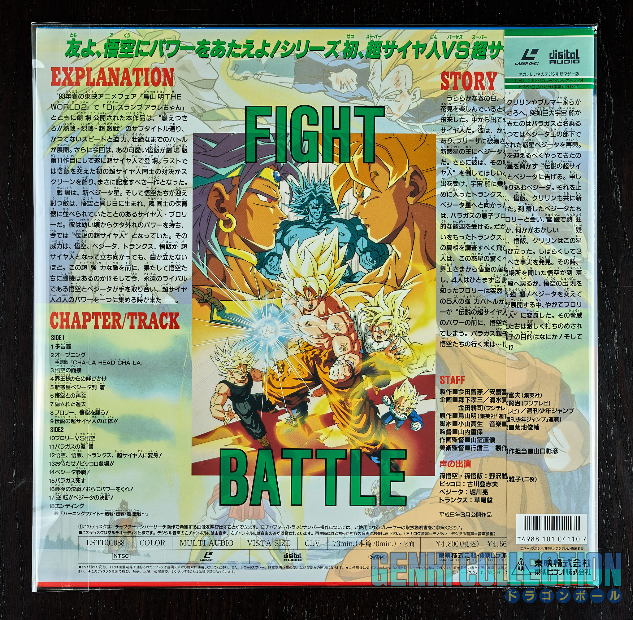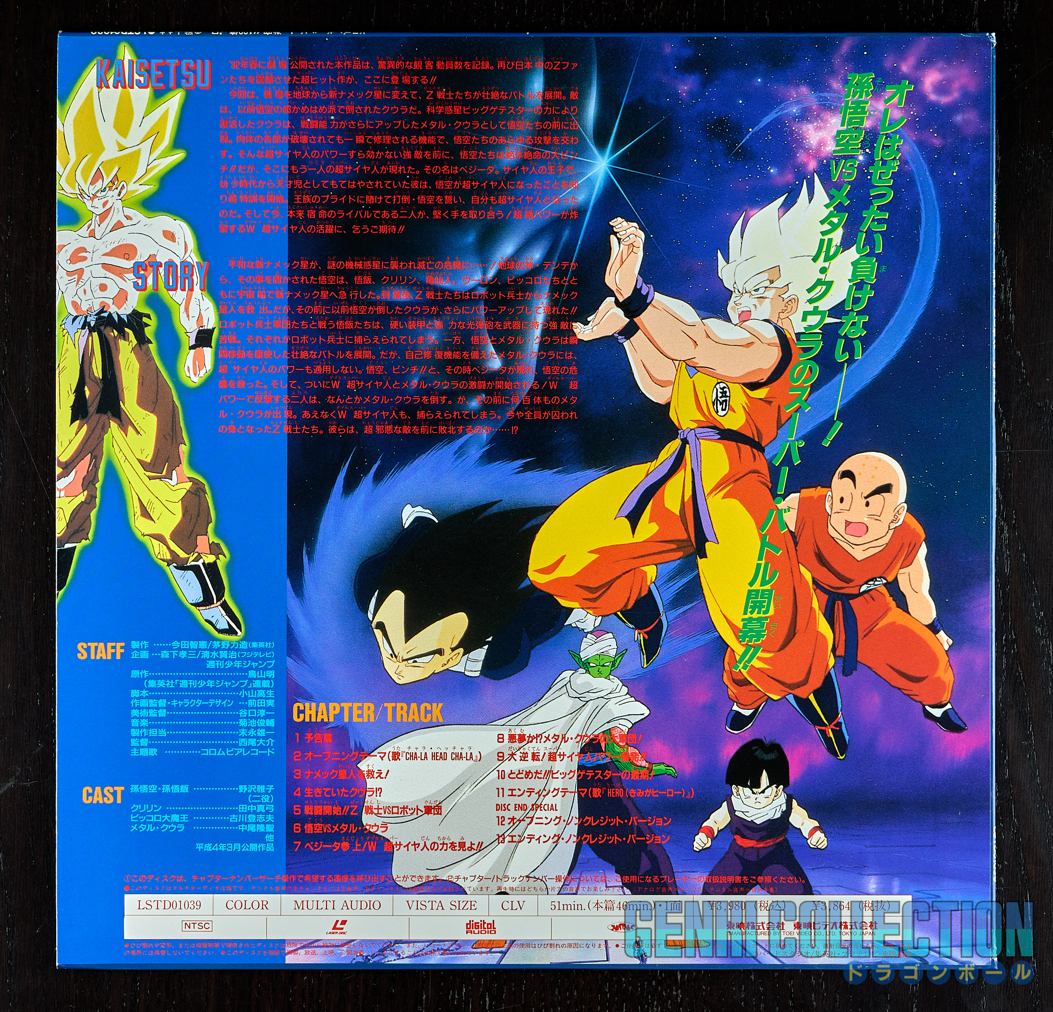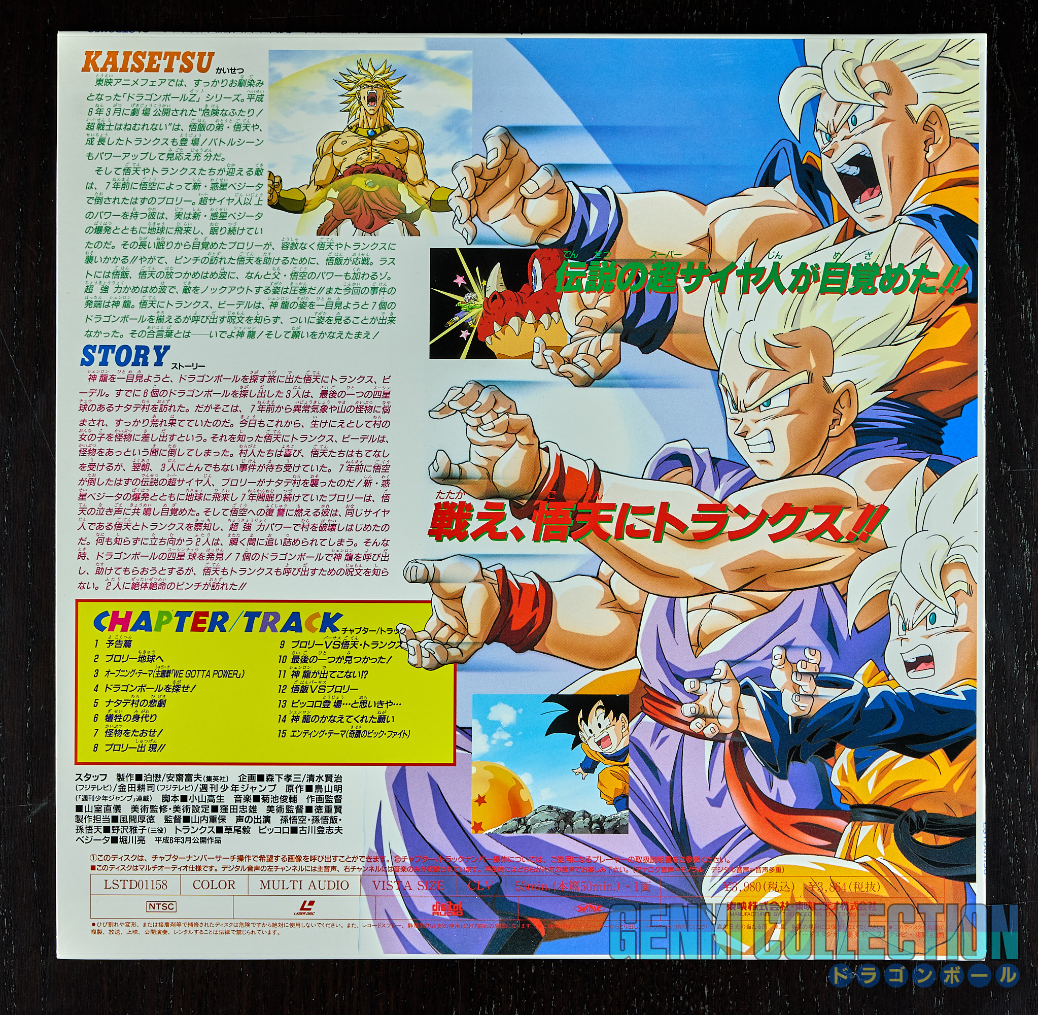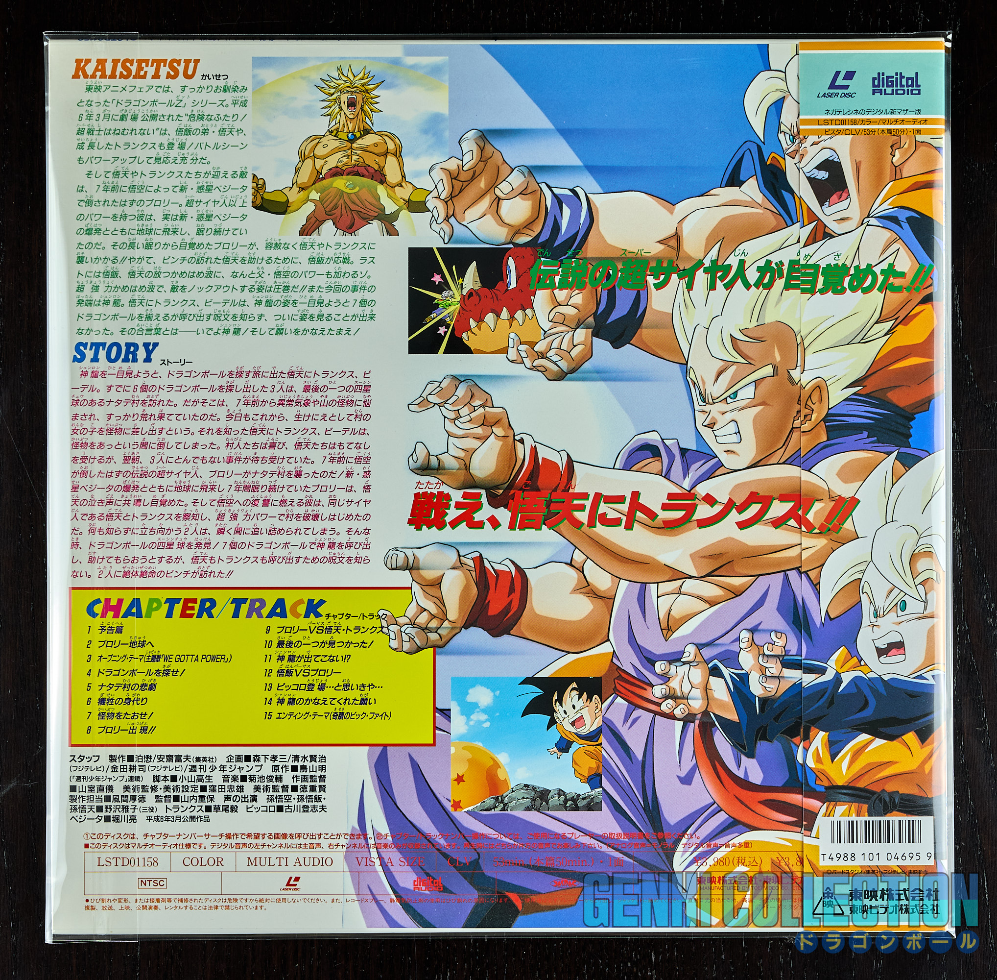 Magnifique set complet de 14 laserdiscs des films Dragon Ball & Dragon Ball Z japonais, complets avec obi ainsi que 2 laserdiscs des films français dont un scellé sous blister. Tous les laserdiscs ont été protégés sous sleeve. Voici le détail : - Dragon Ball Z avec obi en très bon état(1991) - Dragon Ball Z "Kono Yo De Ichiban Tsuyoi Yatsu" avec obi en très bon état (1992) - Dragon Ball Z "Chikyū Marugoto Chō Kessen" avec obi en très bon état (1992) - Dragon Ball Z "Sūpā Saiyajin Da Son Gokū" avec obi en très bon état (1992) - Dragon Ball Z "Tobikkiri No Saikyō Tai Saikyō" avec obi en très bon état (1992) - Dragon Ball Z "Gekitotsu!! Hyaku Oku Pawā No Senshi Tatchi" avec obi en très bon état mais très léger plis dans un coin (1992) - Dragon Ball Z "Kyokugen Batoru!! San Dai Sūpā Saiyajin" avec obi en très bon état (1993) - Dragon Ball Z "Moetsukiro!! Nessen, Ressen, Chō Gekissen!!" avec obi en très bon état (1993) - Dragon Ball Z "Ginga Giri Giri!! Butchigiri No Sugoi Yatsu" avec obi en très bon état (1994) - Dragon Ball Z "Kiken Na Futari! Sūpā Senshi Wa Nemurenai" avec obi en très bon état (1994) - Dragon Ball Z "Sūpā Senshi Gekiha!! Katsu No Wa Ore Da" avec obi en très bon état (1995) - Dragon Ball Z "Fukkatsu No Fyūjon!! Gokū To Bejīta" avec obi en très bon état (1995) - Dragon Ball Z "Ryūken Bakuhatsu!! Gokū Ga Daraneba Dare Ga Yaru" avec obi en très bon état, quelques très légers défauts esthétiques (1996) - Dragon Ball "Saikyō He No Michi" avec obi en très bon état mais petit pli en bas du LD et au coin droit(1996) - Dragon Ball Z "Broly le Super Guerrier" édition française scellée, quelques petits défauts esthétiques (légers plis) (1993) - Dragon Ball Z "Fusion et L'Attaque du Dragon" édition française avec quelques défauts esthétiques (légers plis et légère usure), (1995).