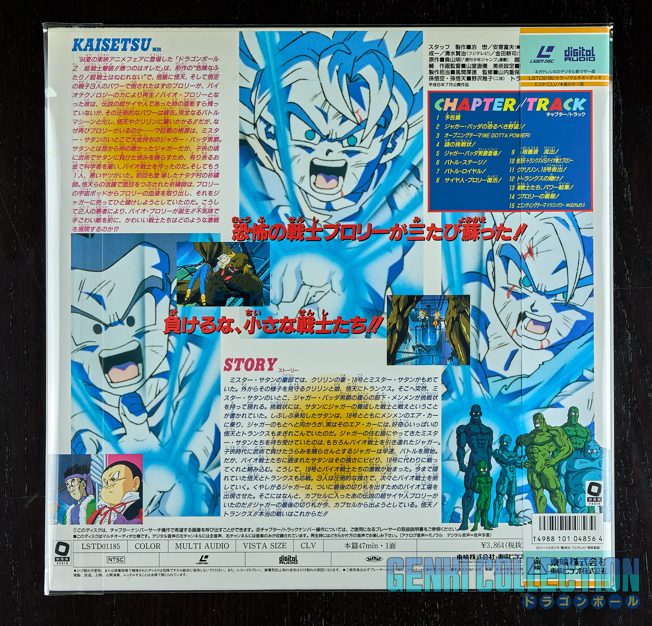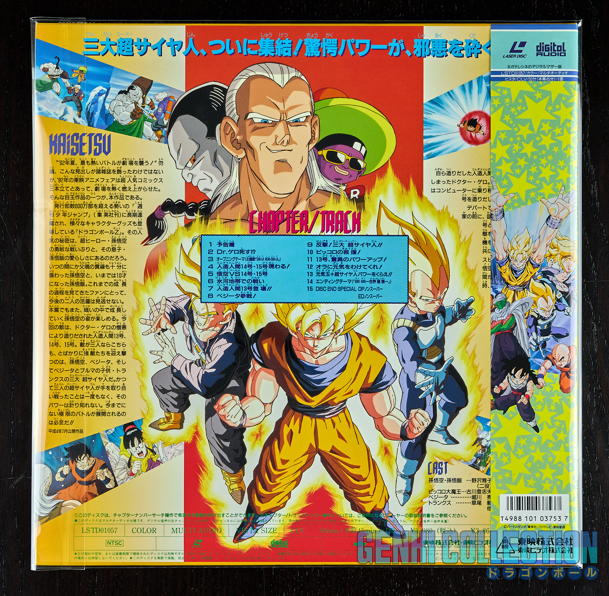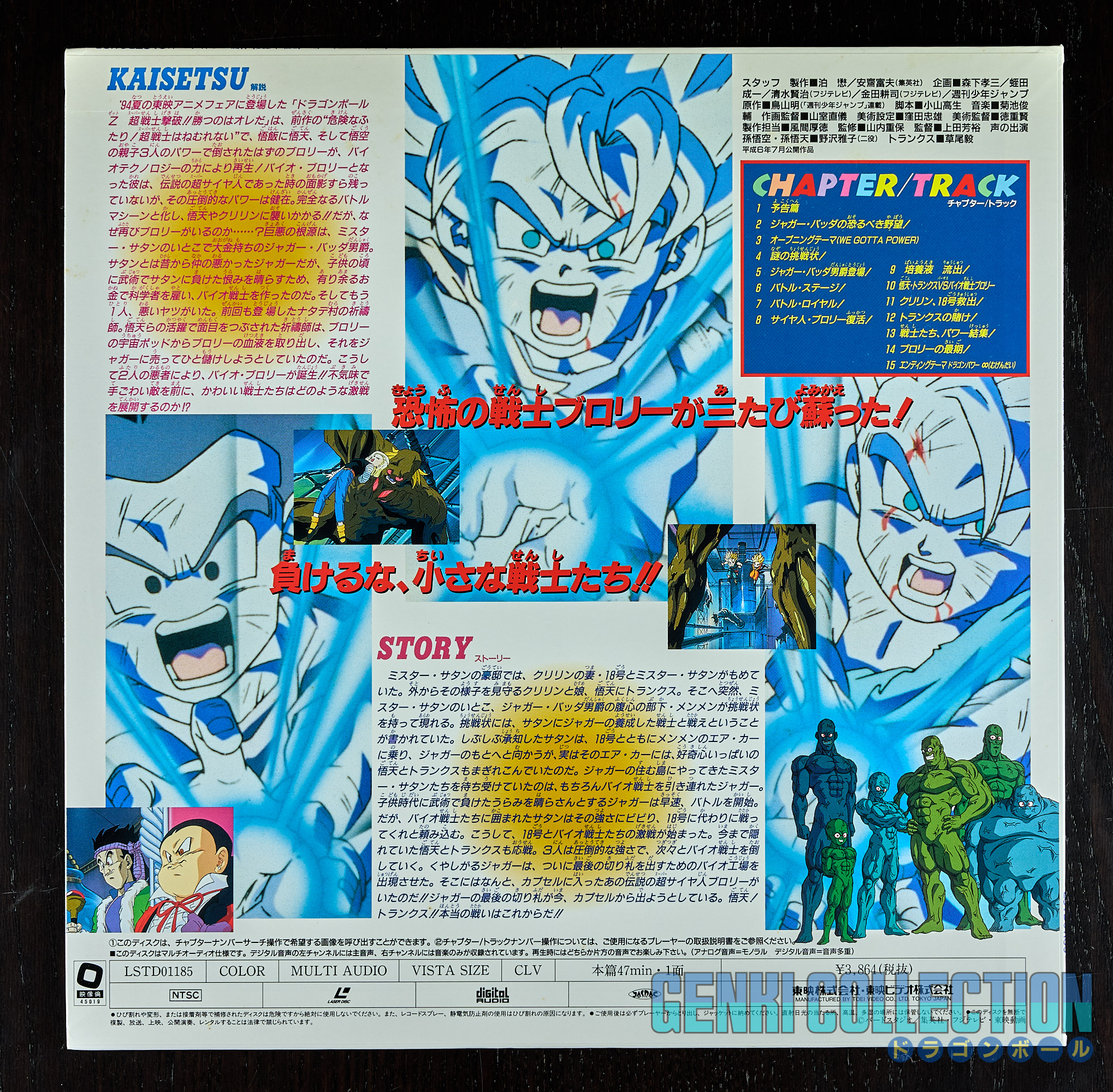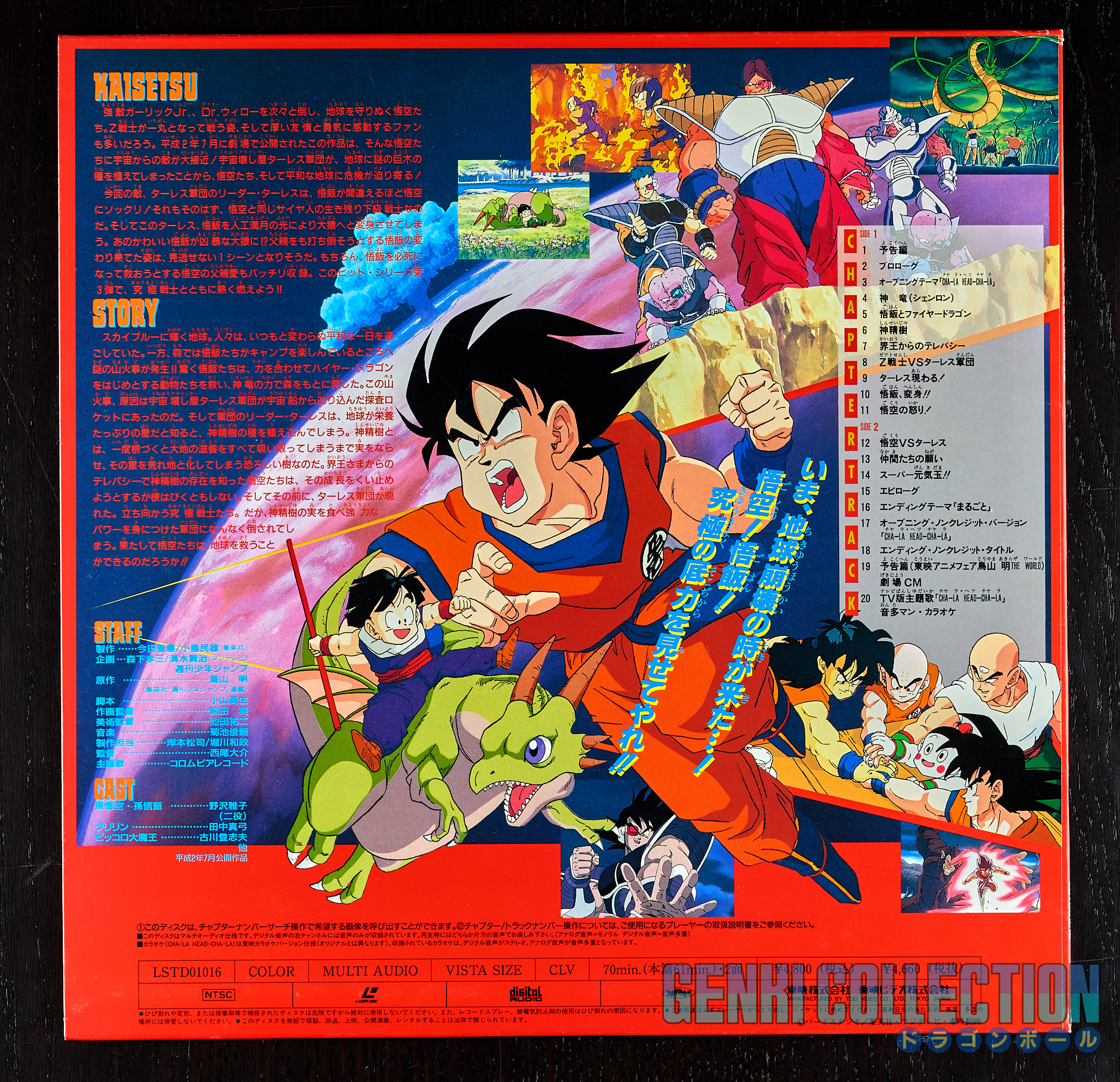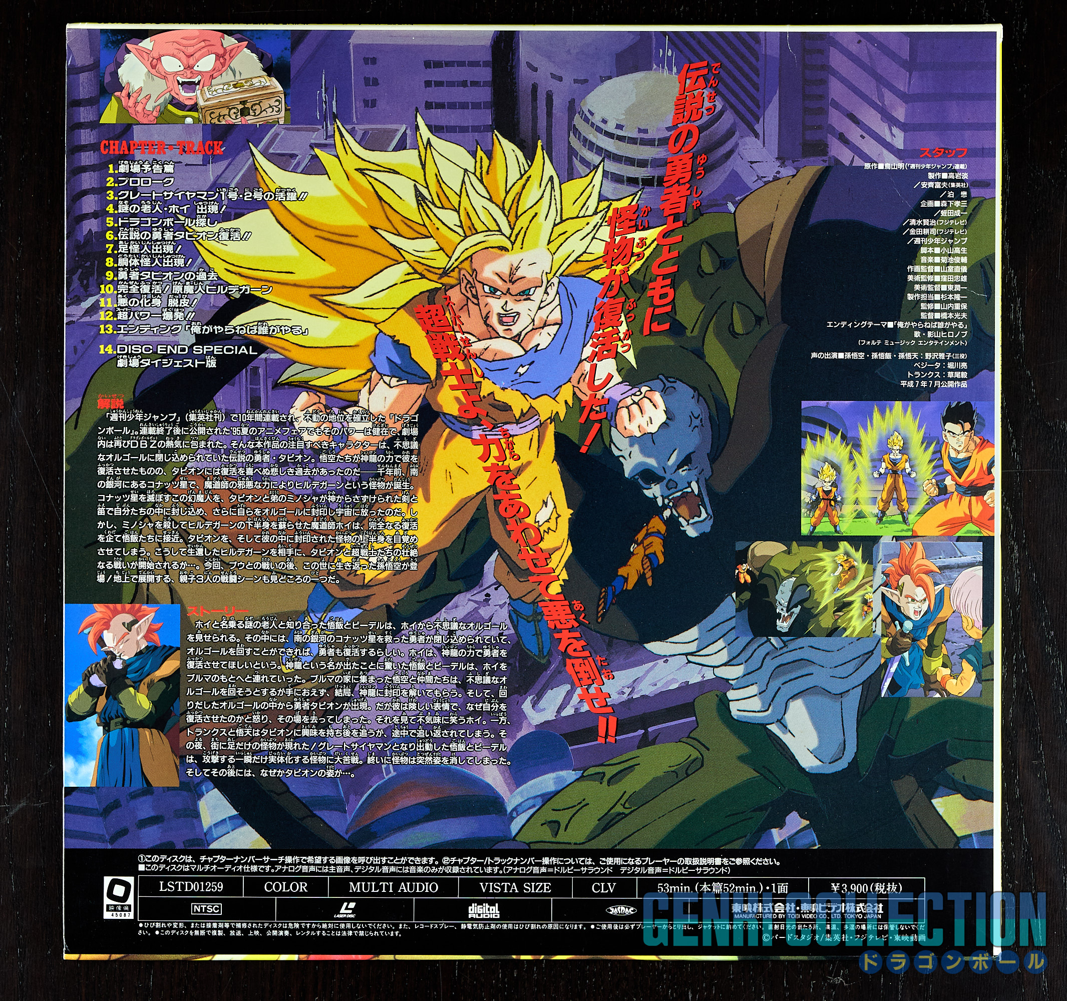 Magnifique set complet de 14 laserdiscs des films Dragon Ball & Dragon Ball Z japonais, complets avec obi ainsi que 2 laserdiscs des films français dont un scellé sous blister. Tous les laserdiscs ont été protégés sous sleeve. Voici le détail : - Dragon Ball Z avec obi en très bon état(1991) - Dragon Ball Z "Kono Yo De Ichiban Tsuyoi Yatsu" avec obi en très bon état (1992) - Dragon Ball Z "Chikyū Marugoto Chō Kessen" avec obi en très bon état (1992) - Dragon Ball Z "Sūpā Saiyajin Da Son Gokū" avec obi en très bon état (1992) - Dragon Ball Z "Tobikkiri No Saikyō Tai Saikyō" avec obi en très bon état (1992) - Dragon Ball Z "Gekitotsu!! Hyaku Oku Pawā No Senshi Tatchi" avec obi en très bon état mais très léger plis dans un coin (1992) - Dragon Ball Z "Kyokugen Batoru!! San Dai Sūpā Saiyajin" avec obi en très bon état (1993) - Dragon Ball Z "Moetsukiro!! Nessen, Ressen, Chō Gekissen!!" avec obi en très bon état (1993) - Dragon Ball Z "Ginga Giri Giri!! Butchigiri No Sugoi Yatsu" avec obi en très bon état (1994) - Dragon Ball Z "Kiken Na Futari! Sūpā Senshi Wa Nemurenai" avec obi en très bon état (1994) - Dragon Ball Z "Sūpā Senshi Gekiha!! Katsu No Wa Ore Da" avec obi en très bon état (1995) - Dragon Ball Z "Fukkatsu No Fyūjon!! Gokū To Bejīta" avec obi en très bon état (1995) - Dragon Ball Z "Ryūken Bakuhatsu!! Gokū Ga Daraneba Dare Ga Yaru" avec obi en très bon état, quelques très légers défauts esthétiques (1996) - Dragon Ball "Saikyō He No Michi" avec obi en très bon état mais petit pli en bas du LD et au coin droit(1996) - Dragon Ball Z "Broly le Super Guerrier" édition française scellée, quelques petits défauts esthétiques (légers plis) (1993) - Dragon Ball Z "Fusion et L'Attaque du Dragon" édition française avec quelques défauts esthétiques (légers plis et légère usure), (1995).