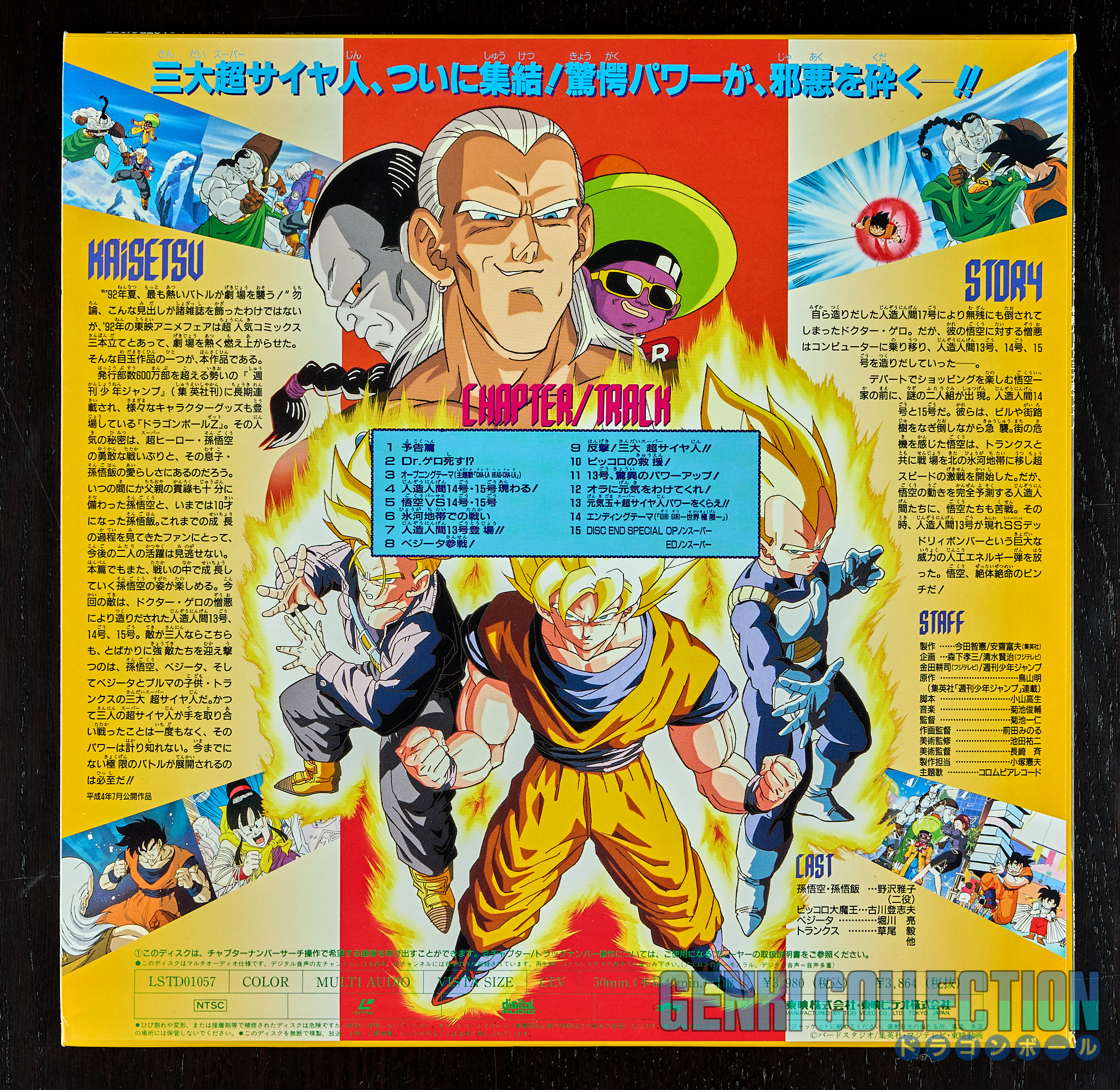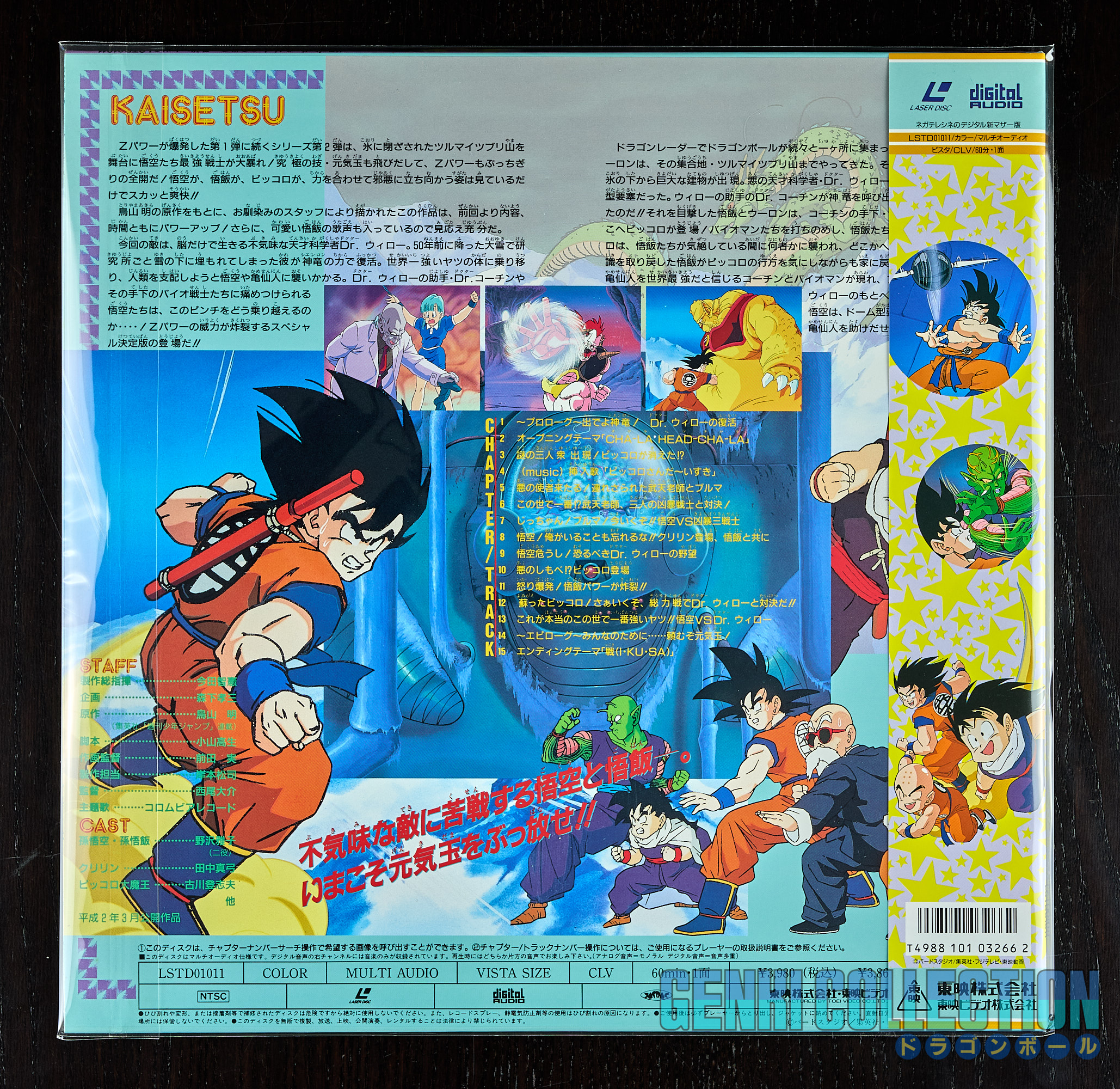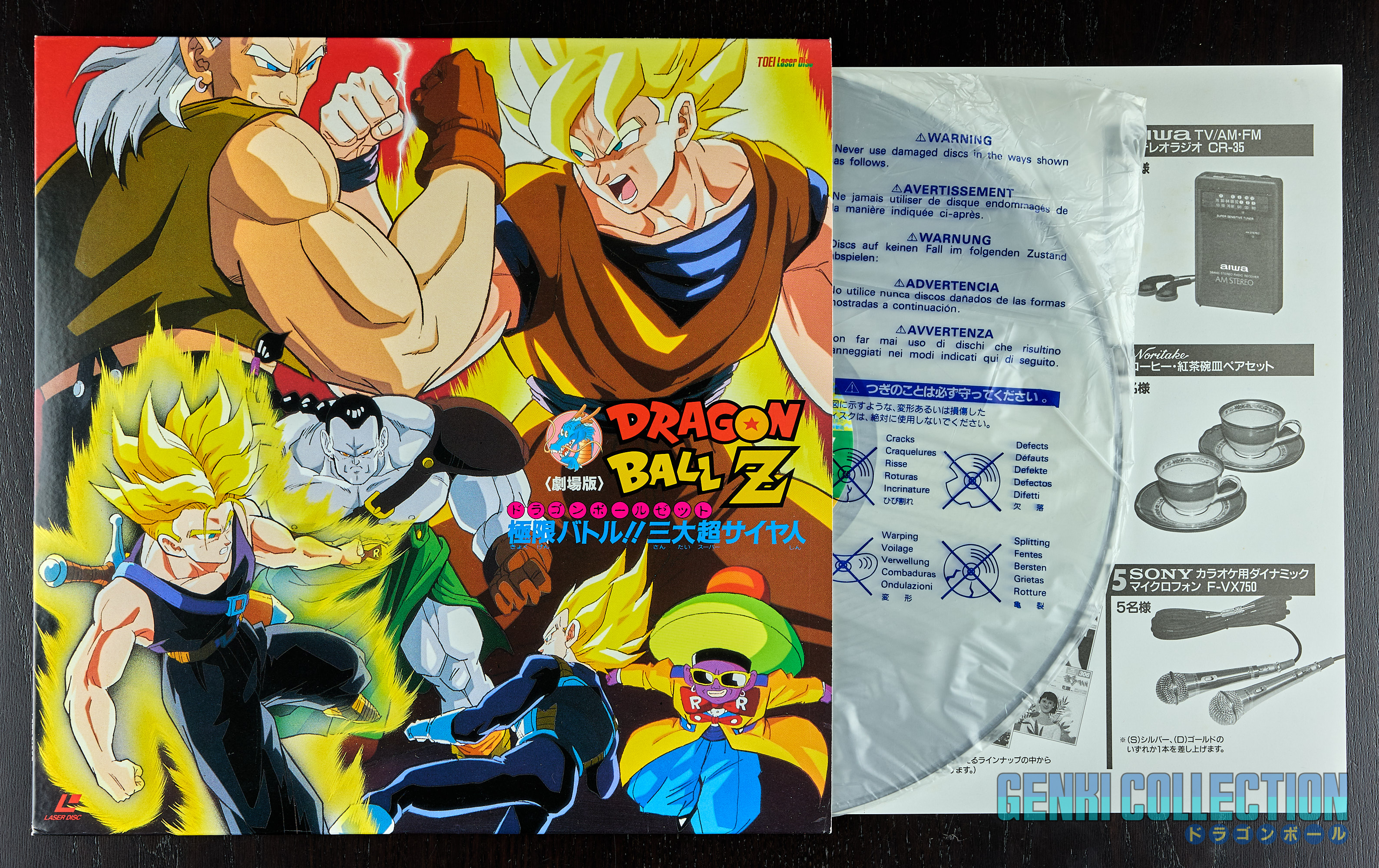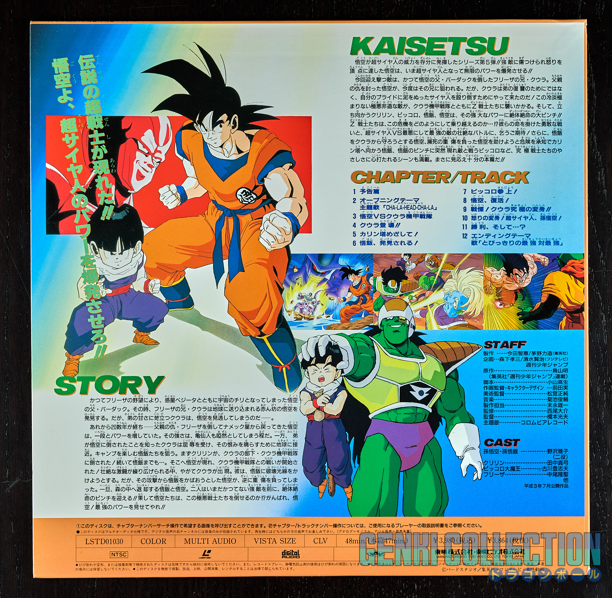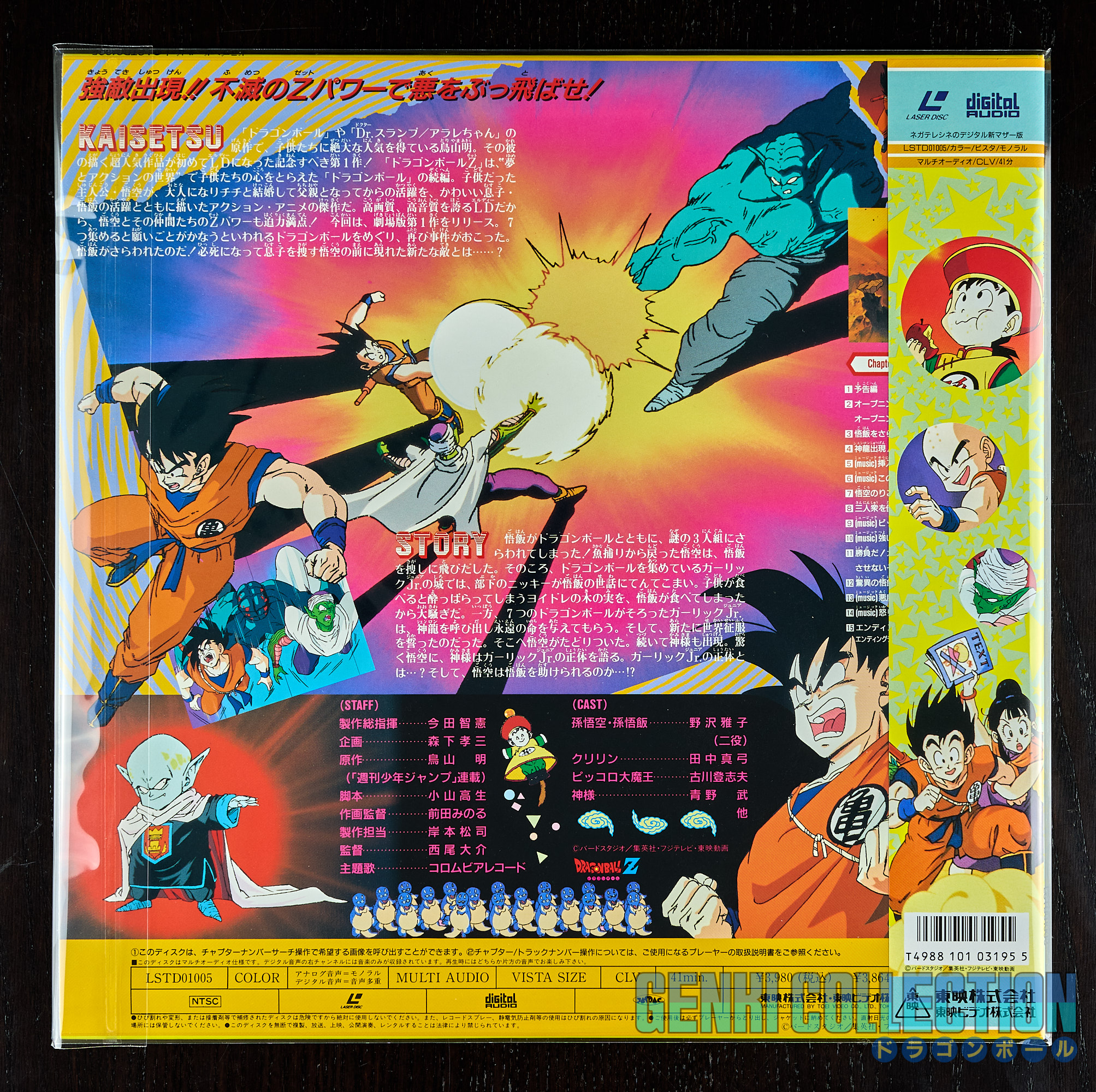 Magnifique set complet de 14 laserdiscs des films Dragon Ball & Dragon Ball Z japonais, complets avec obi ainsi que 2 laserdiscs des films français dont un scellé sous blister. Tous les laserdiscs ont été protégés sous sleeve. Voici le détail : - Dragon Ball Z avec obi en très bon état(1991) - Dragon Ball Z "Kono Yo De Ichiban Tsuyoi Yatsu" avec obi en très bon état (1992) - Dragon Ball Z "Chikyū Marugoto Chō Kessen" avec obi en très bon état (1992) - Dragon Ball Z "Sūpā Saiyajin Da Son Gokū" avec obi en très bon état (1992) - Dragon Ball Z "Tobikkiri No Saikyō Tai Saikyō" avec obi en très bon état (1992) - Dragon Ball Z "Gekitotsu!! Hyaku Oku Pawā No Senshi Tatchi" avec obi en très bon état mais très léger plis dans un coin (1992) - Dragon Ball Z "Kyokugen Batoru!! San Dai Sūpā Saiyajin" avec obi en très bon état (1993) - Dragon Ball Z "Moetsukiro!! Nessen, Ressen, Chō Gekissen!!" avec obi en très bon état (1993) - Dragon Ball Z "Ginga Giri Giri!! Butchigiri No Sugoi Yatsu" avec obi en très bon état (1994) - Dragon Ball Z "Kiken Na Futari! Sūpā Senshi Wa Nemurenai" avec obi en très bon état (1994) - Dragon Ball Z "Sūpā Senshi Gekiha!! Katsu No Wa Ore Da" avec obi en très bon état (1995) - Dragon Ball Z "Fukkatsu No Fyūjon!! Gokū To Bejīta" avec obi en très bon état (1995) - Dragon Ball Z "Ryūken Bakuhatsu!! Gokū Ga Daraneba Dare Ga Yaru" avec obi en très bon état, quelques très légers défauts esthétiques (1996) - Dragon Ball "Saikyō He No Michi" avec obi en très bon état mais petit pli en bas du LD et au coin droit(1996) - Dragon Ball Z "Broly le Super Guerrier" édition française scellée, quelques petits défauts esthétiques (légers plis) (1993) - Dragon Ball Z "Fusion et L'Attaque du Dragon" édition française avec quelques défauts esthétiques (légers plis et légère usure), (1995).