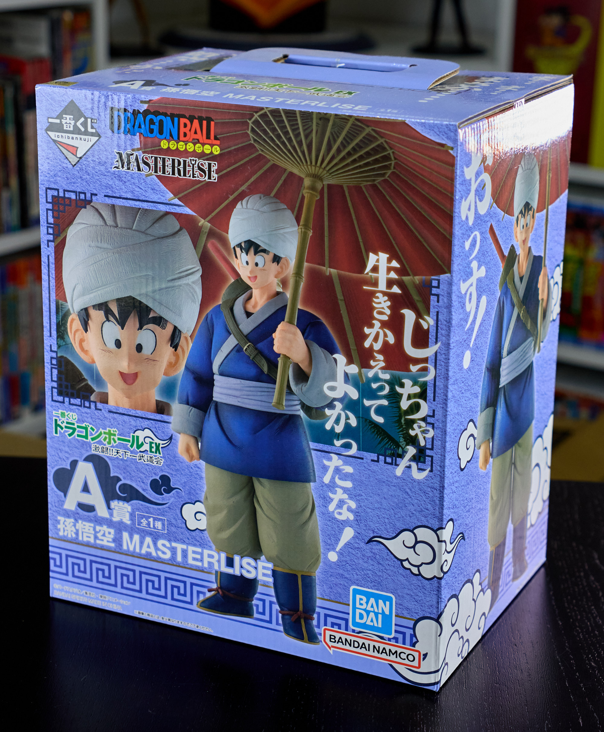 Lot de 5 figurines Ichiban Kuji en boîtes de la série "Budokai Tenkaichi" : Gokû ombrelle, Chichi, Annonceur, Ma Junior (Piccolo Daimaô), Gokû sans turban. Tout en très bon état.