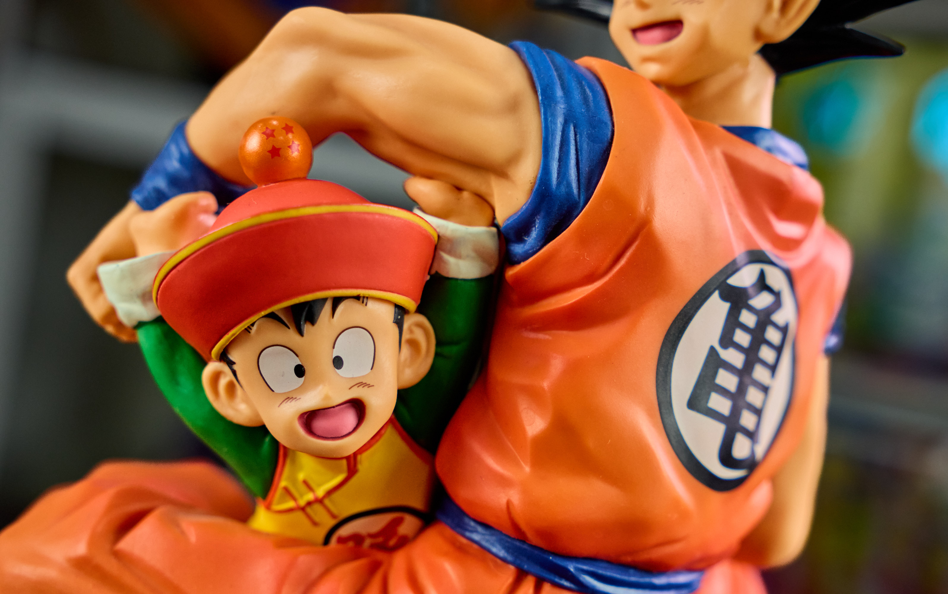 Piccolo, Ten Shin Han, Chaozu, Yamcha, Gokû & Gohan, Muten Roshi (série "Strong Chains", boîte un peu abîmée).