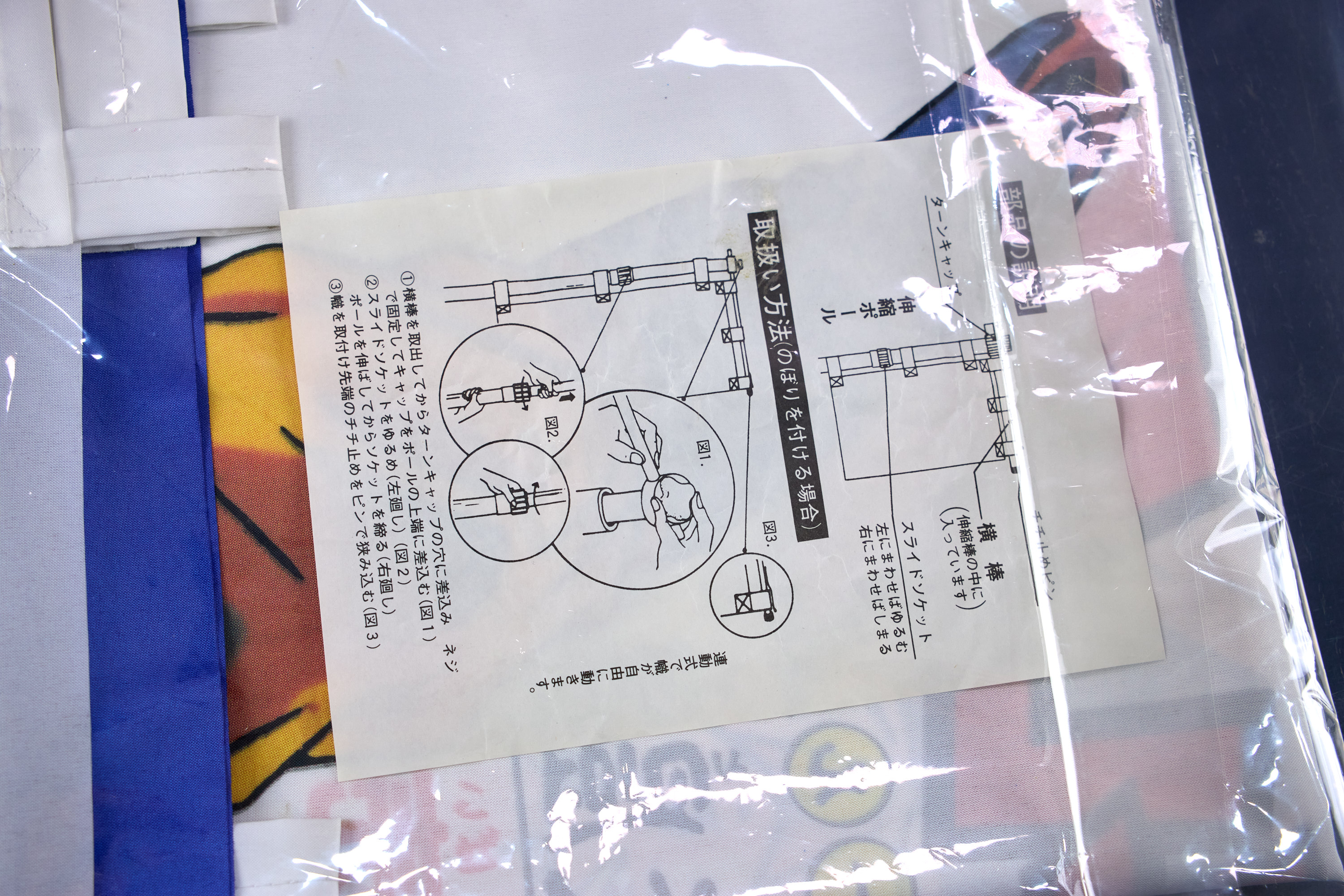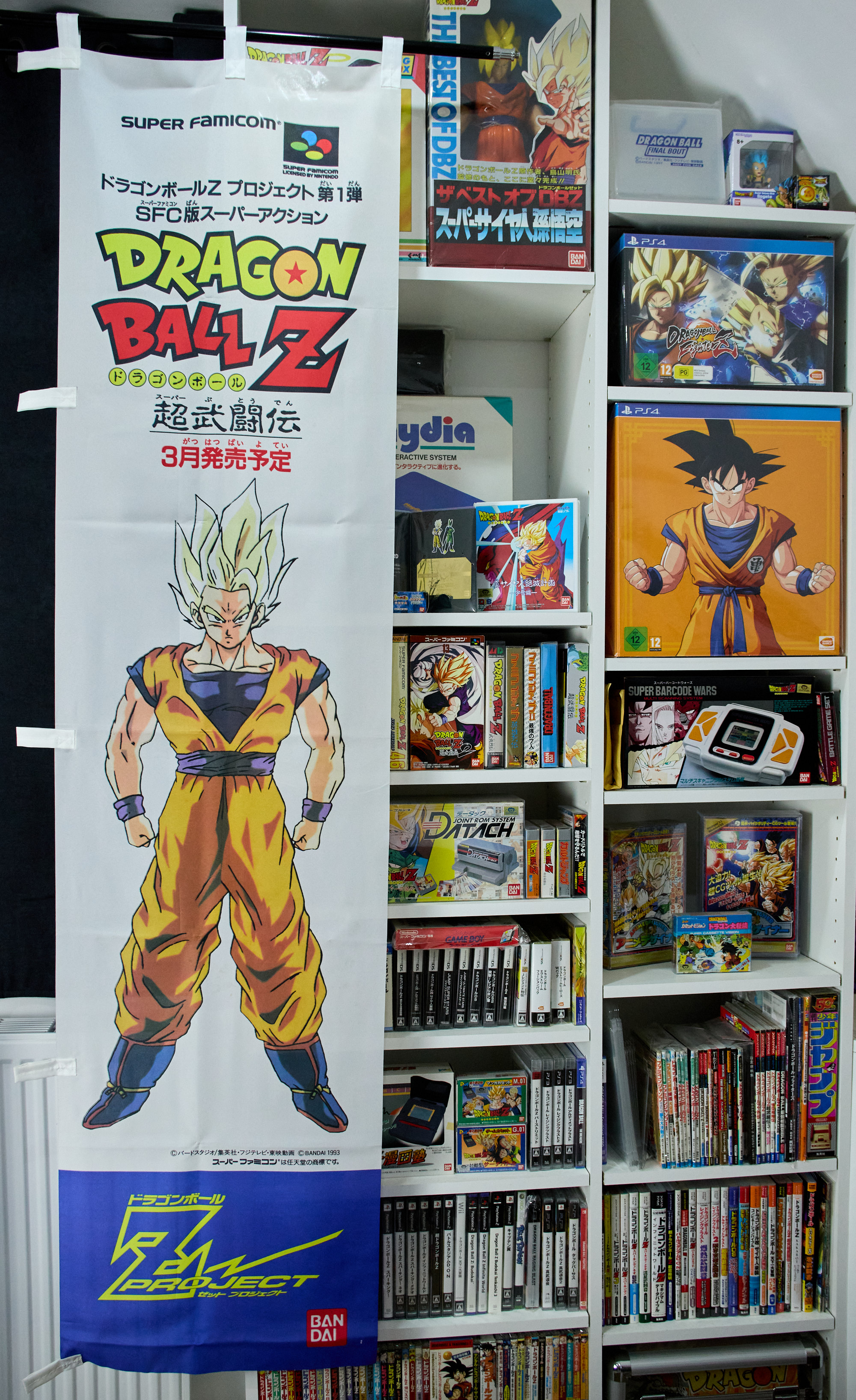 Ce drapeau a été produit exclusivement pour les magasins japonais à l'occasion de la promotion du jeu DRAGON BALL Z SUPER BUTÔDEN sur SUPER FAMICOM, sorti en Mars 1993.