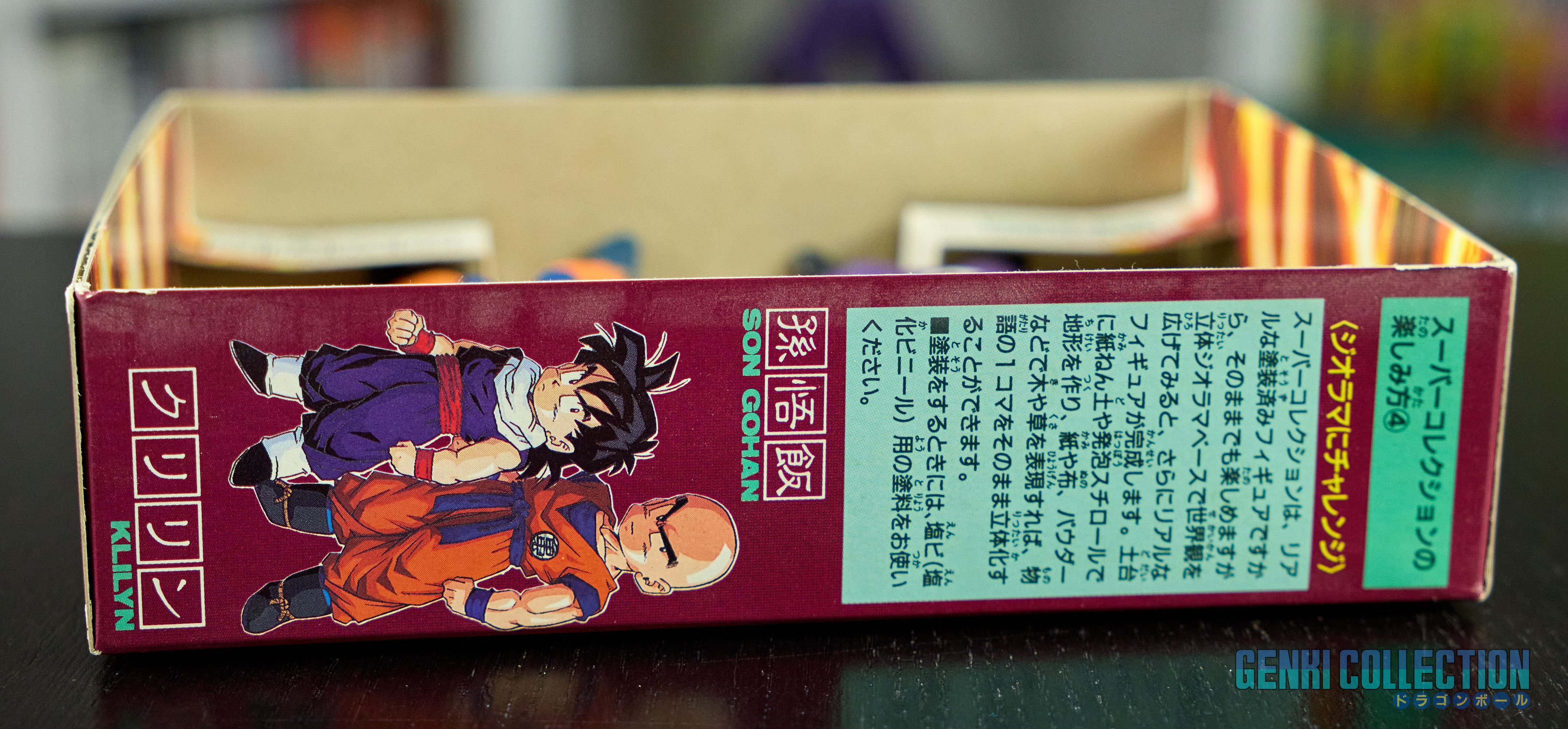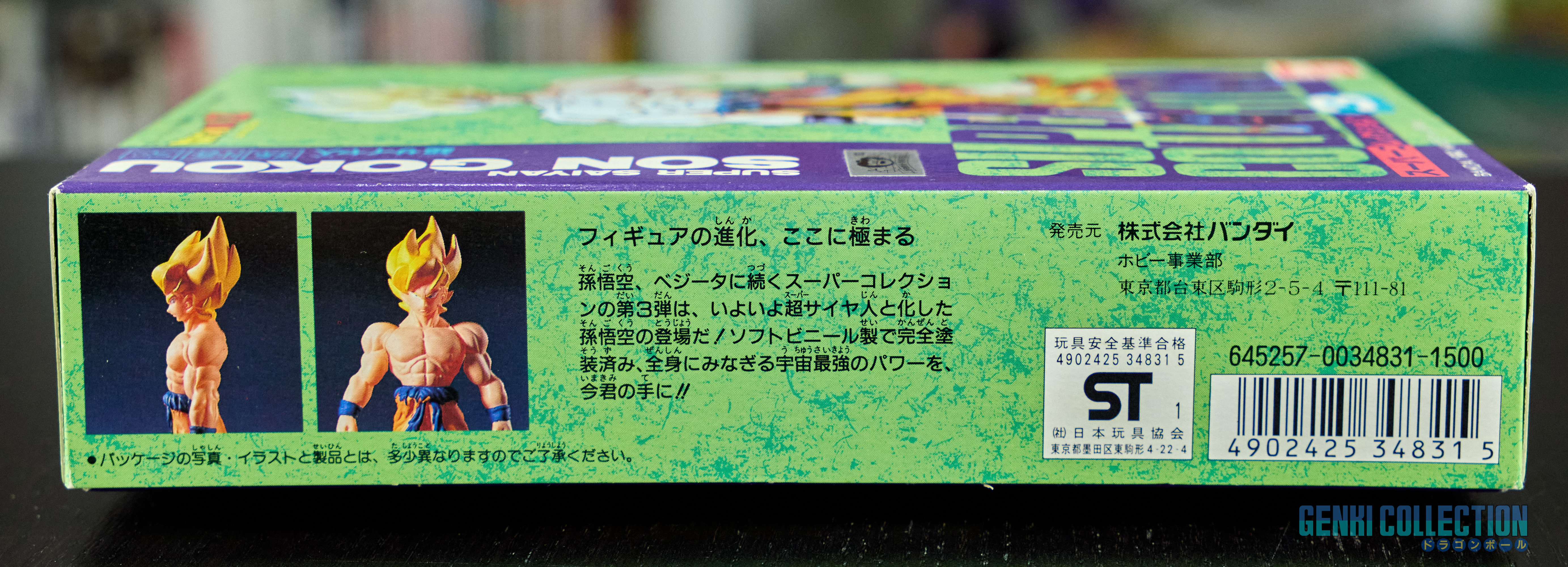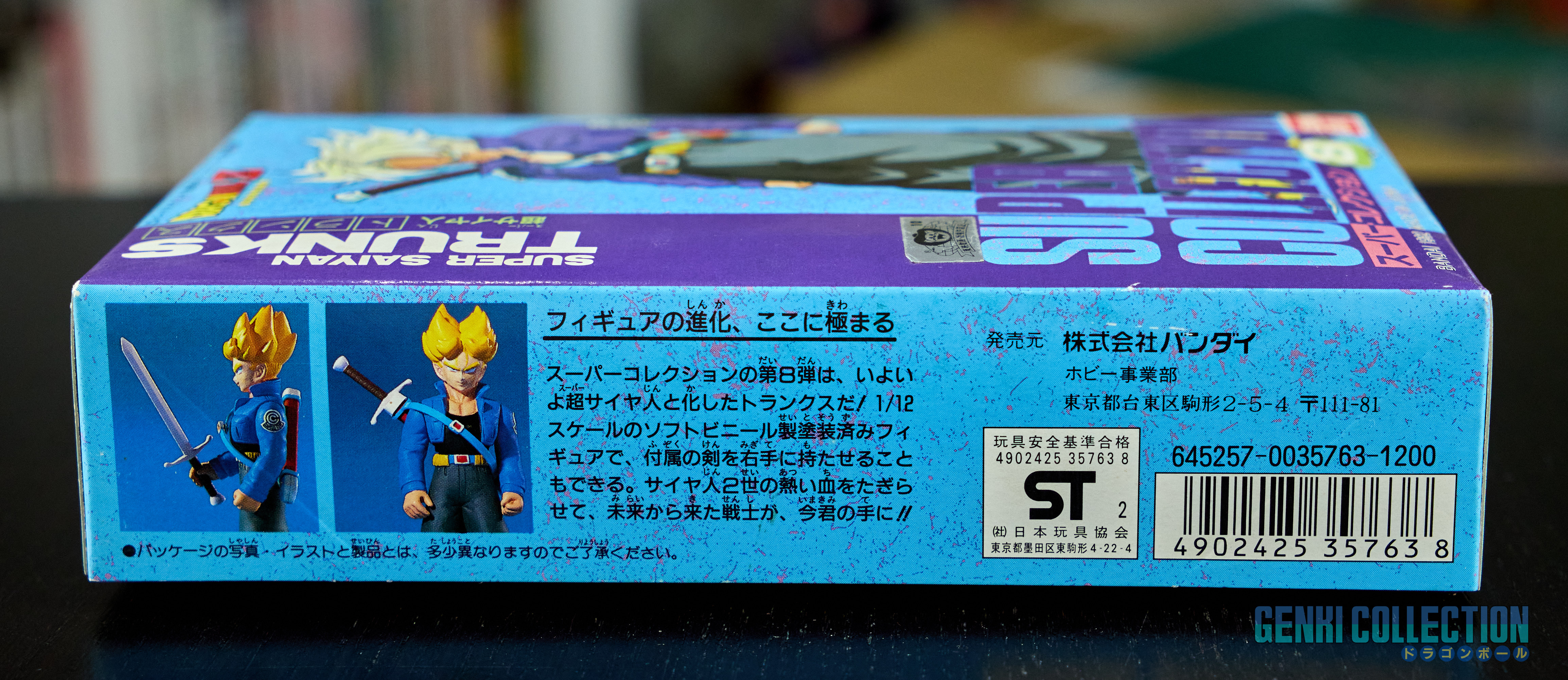 Set complet de 9 figurines Dragon Ball Z Super Collection de 1991 à 1993. Toutes sont complètes, en très bon état général. Seule la vol. 6 de Piccolo est en état un peu moins bon que les autres (boîte sensiblement plus abîmée). Stickers présents pour les vol.1 et 4, ainsi que pour les vol. 7 et 8 avec les épées des Trunks encore en grappes et sous blister. L'une des plus belles séries de figurines de l'époque, pas forcément très connue des collectionneurs.