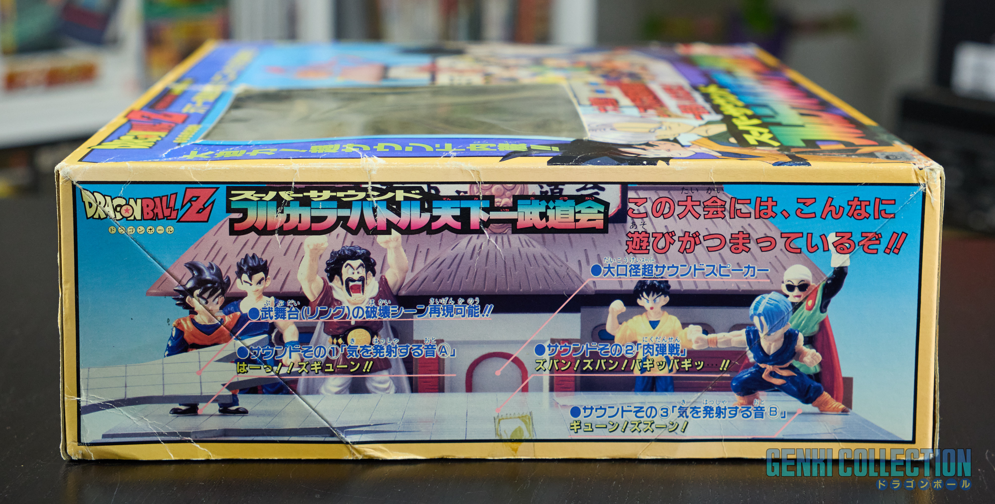 Le légendaire bubutai du Tenka Ichi Budôkai ici présent en version japonaise dans sa boîte avec 6 mini figurines et des effets sonores. La boîte n'est pas en parfait état et présente quelques marques d'usures et de petites déchirures, mais l'article est complet avec ses 6 mini-figurines et tous les accessoires à assembler. Les boutons et effets sonores sont parfaitement fonctionnels.