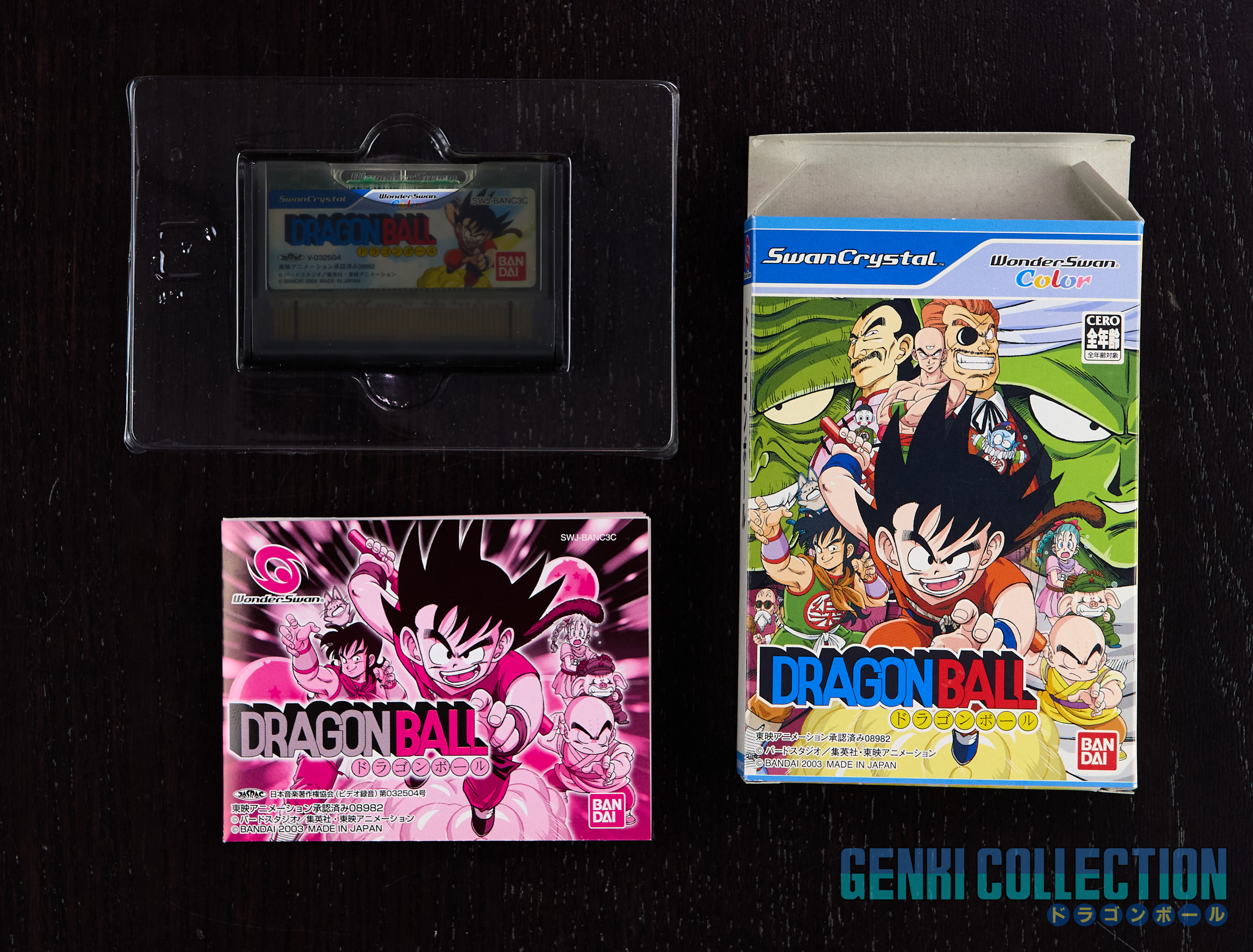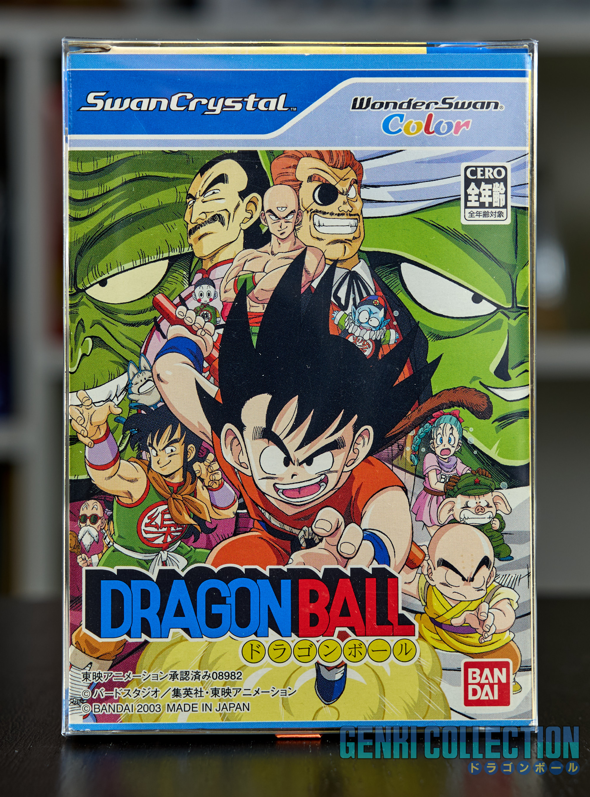 Jeu vidéo version japonaise DRAGON BALL sur WONDERSWAN COLOR et CRYSTAL présenté dans sa Crystal Box. Jeu particulièrement rare et en excellent état, complet avec sa boîte, notice et cartouche.