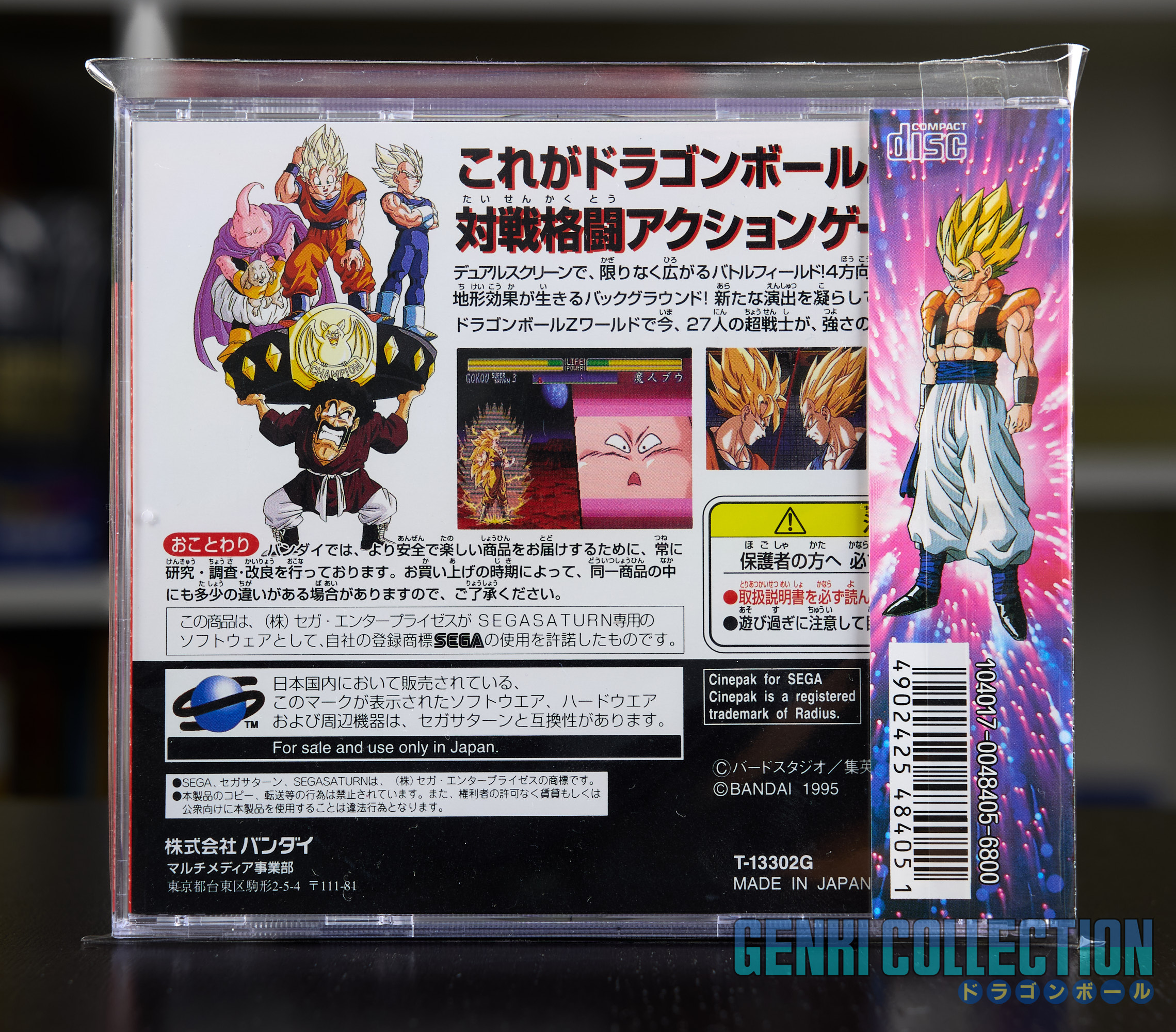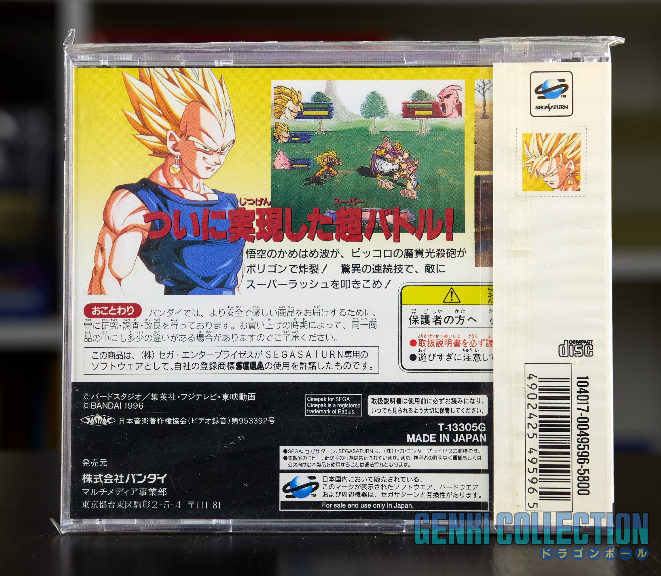 Intégrale en version japonaise des 2 jeux vidéos DRAGON BALL Z sur SATURN, protégés sous cellophane. Jeux en excellent état et complets avec boîtier, CD et notice.