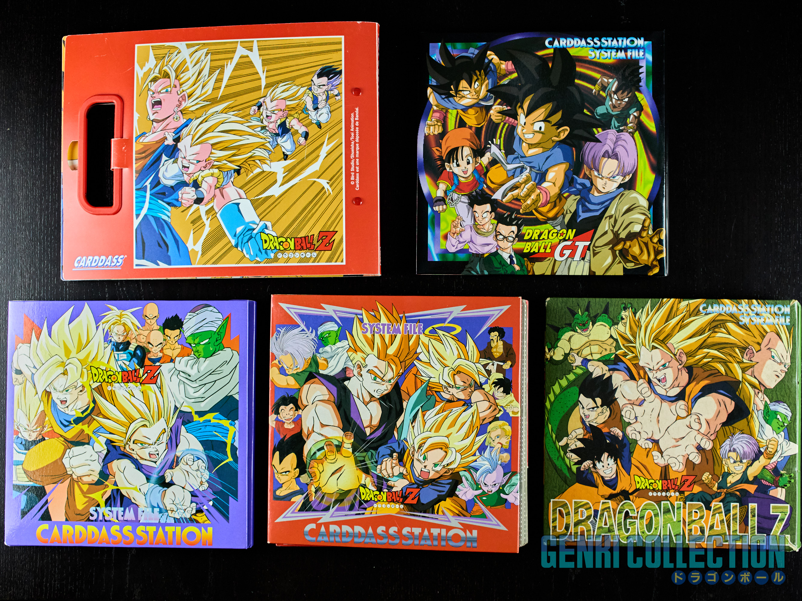 Lot de 5 classeurs CARDDASS STATION DRAGON BALL Z & GTLot comprenant 3 classeurs CARDDASS STATION DRAGON BALL Z Japonais, le rouge contient de très nombreuses "files station", les feuilles plastifiées pour ranger les cartes, en état correct, le vert est en état correct également, le bleu, le plus rare est en excellent état. Le Carddass Station DRAGON BALL GT est quasiment neuf et enfin, le Carddass Station rouge plastifié (exclusif à la France) est en état correct, avec quelques petits impacts.