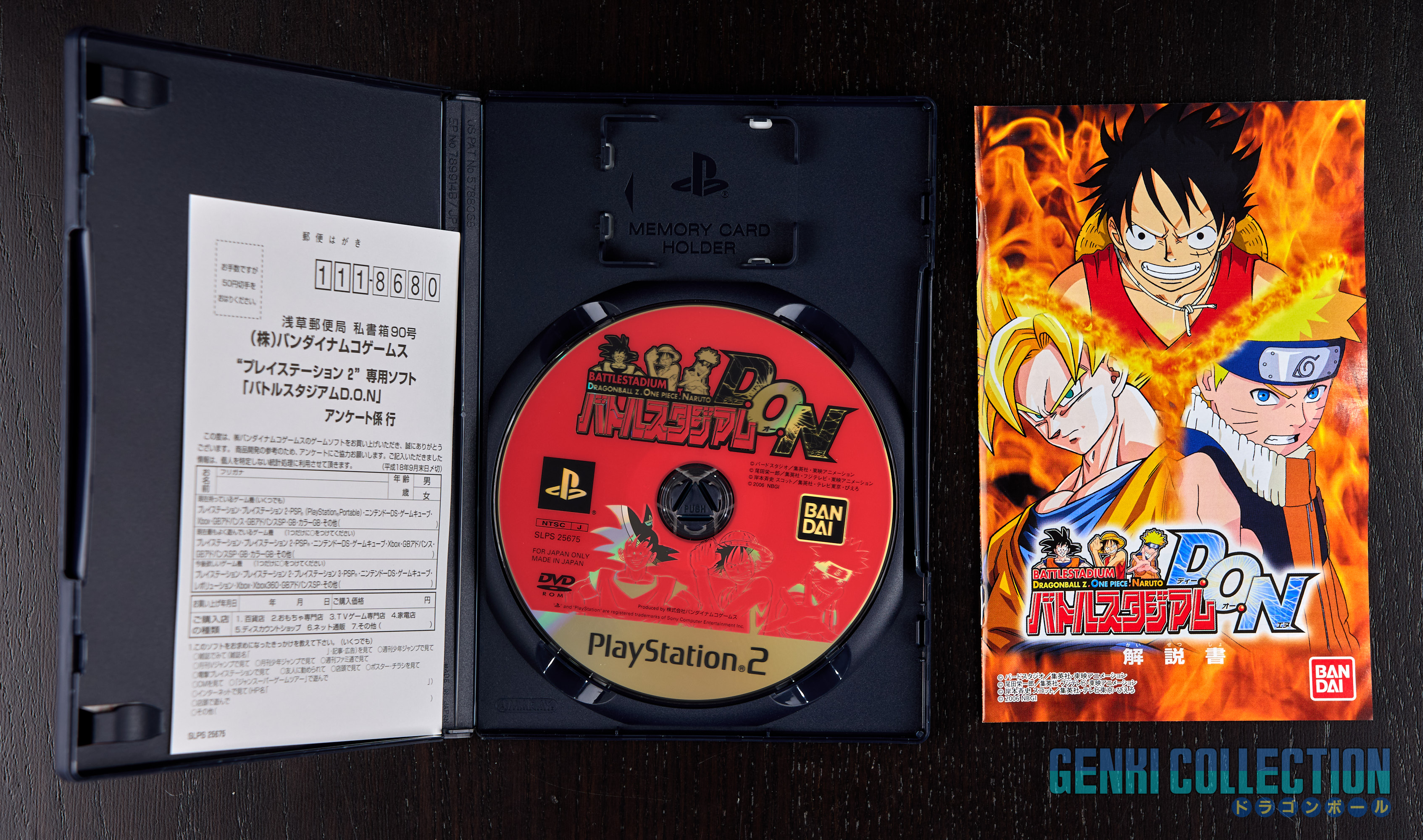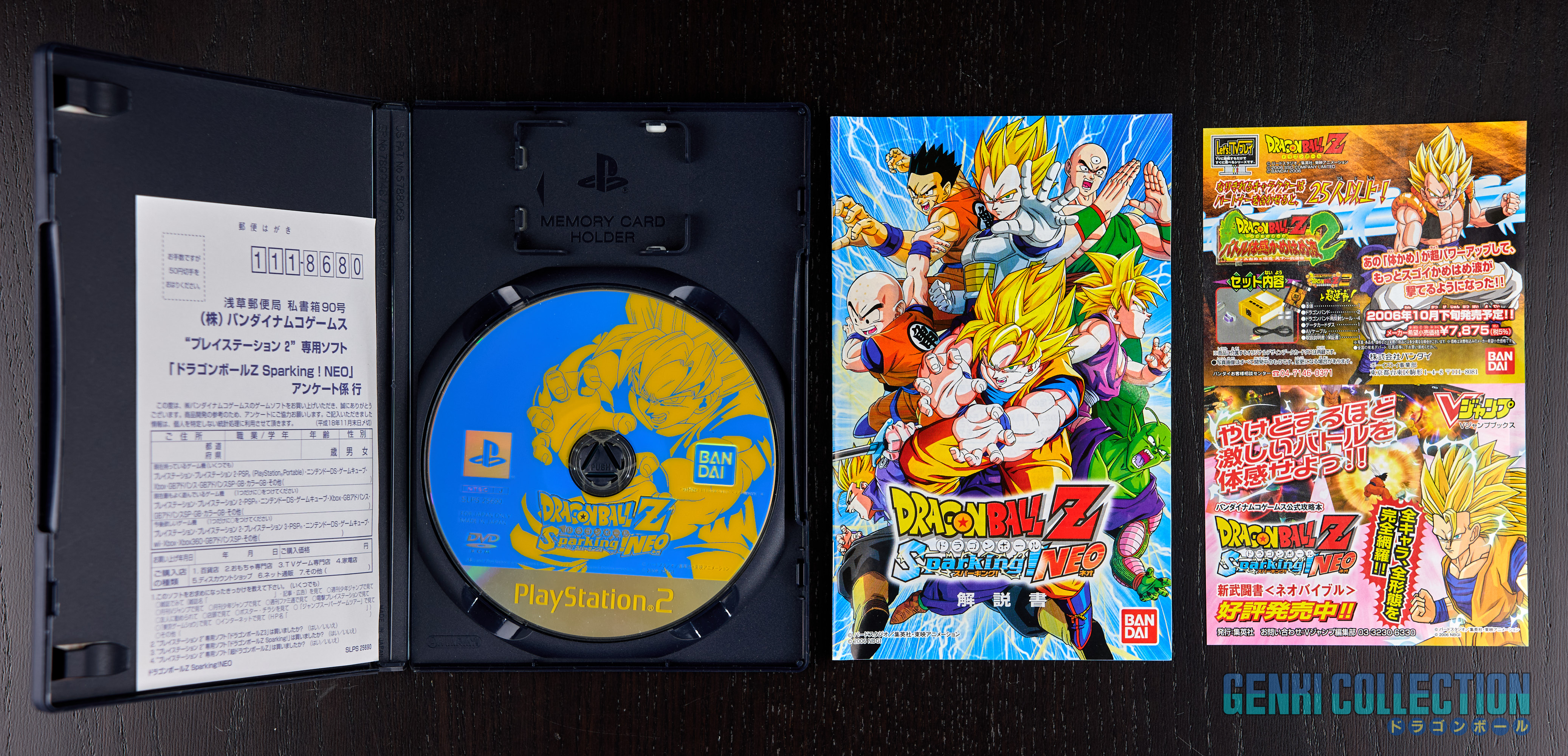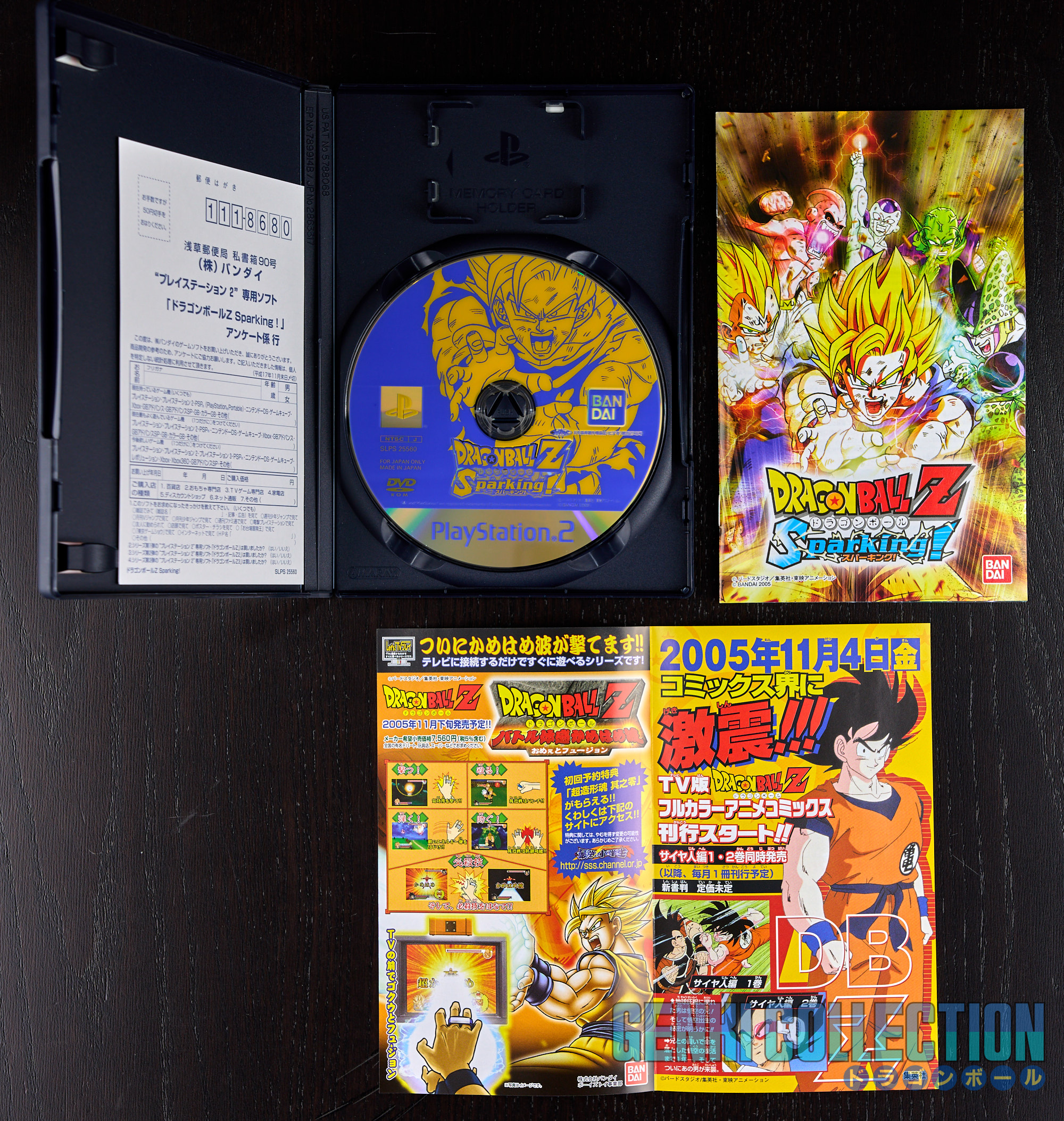 Lot de 5 jeux japonais DRAGON BALL Z ainsi que BATTLE STADIUM DON sur PLAYSTATION 2, présentés dans leur Crystal Box. Les jeux sont complets et en très bon état. - DRAGON BALL Z SPARKING! avec boîte, notice, CD, flyer publicitaire et registered card. - DRAGON BALL Z SPARKING! NEO avec boîte, notice, CD, flyer publicitaire et registered card. - DRAGON BALL Z SPARKING! METEOR avec boîte, notice, CD et registered card. - DRAGON BALL Z INFINITE WORLD avec boîte, notice et CD. - SUPER DRAGON BALL Z avec boîte, notice, CD, flyer publicitaire et registered card. - BATTLE STADIUM DON avec boîte, notice, CD et registered card.