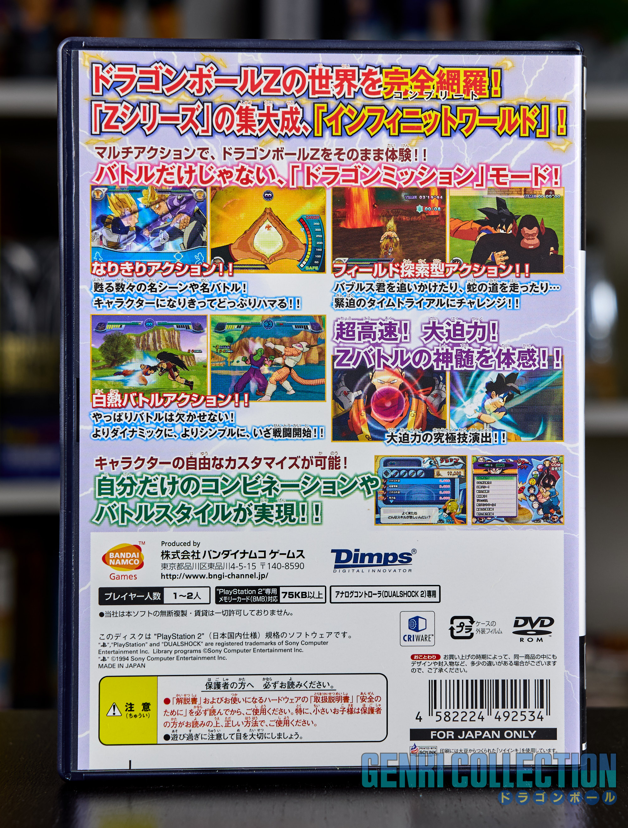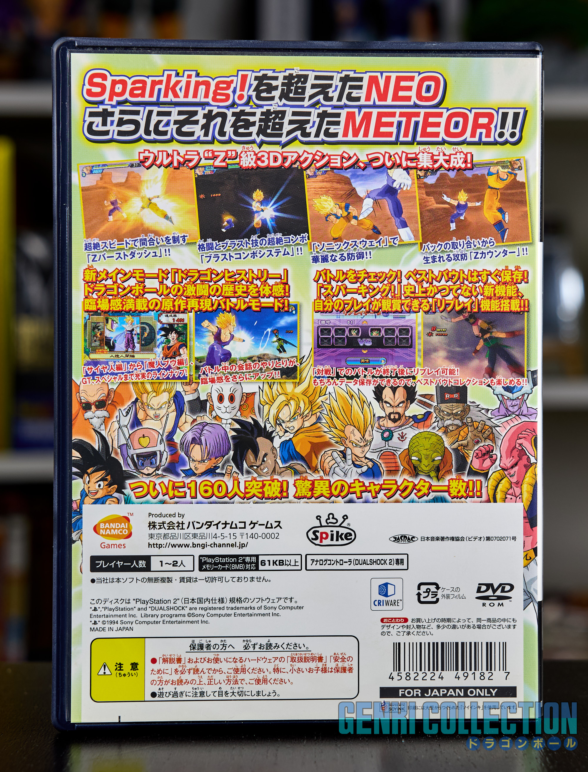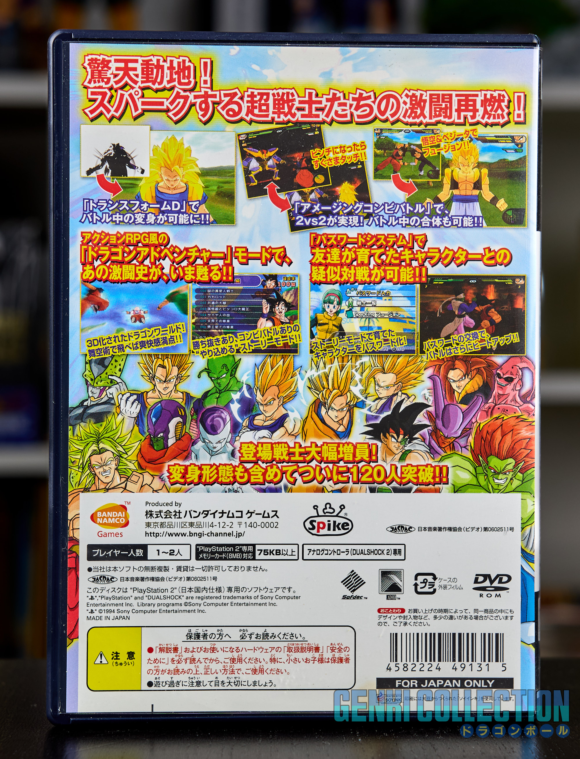 Lot de 5 jeux japonais DRAGON BALL Z ainsi que BATTLE STADIUM DON sur PLAYSTATION 2, présentés dans leur Crystal Box. Les jeux sont complets et en très bon état. - DRAGON BALL Z SPARKING! avec boîte, notice, CD, flyer publicitaire et registered card. - DRAGON BALL Z SPARKING! NEO avec boîte, notice, CD, flyer publicitaire et registered card. - DRAGON BALL Z SPARKING! METEOR avec boîte, notice, CD et registered card. - DRAGON BALL Z INFINITE WORLD avec boîte, notice et CD. - SUPER DRAGON BALL Z avec boîte, notice, CD, flyer publicitaire et registered card. - BATTLE STADIUM DON avec boîte, notice, CD et registered card.