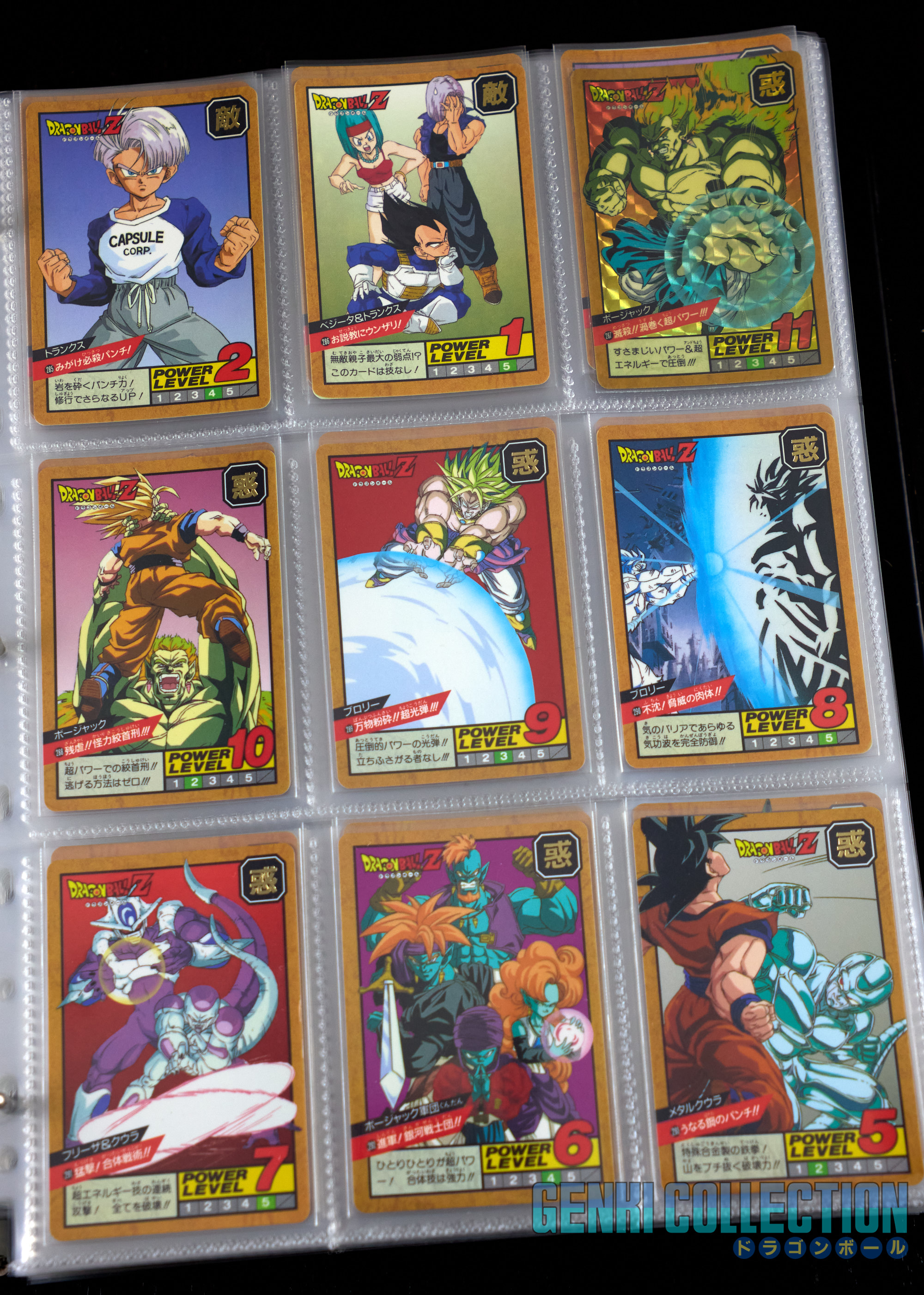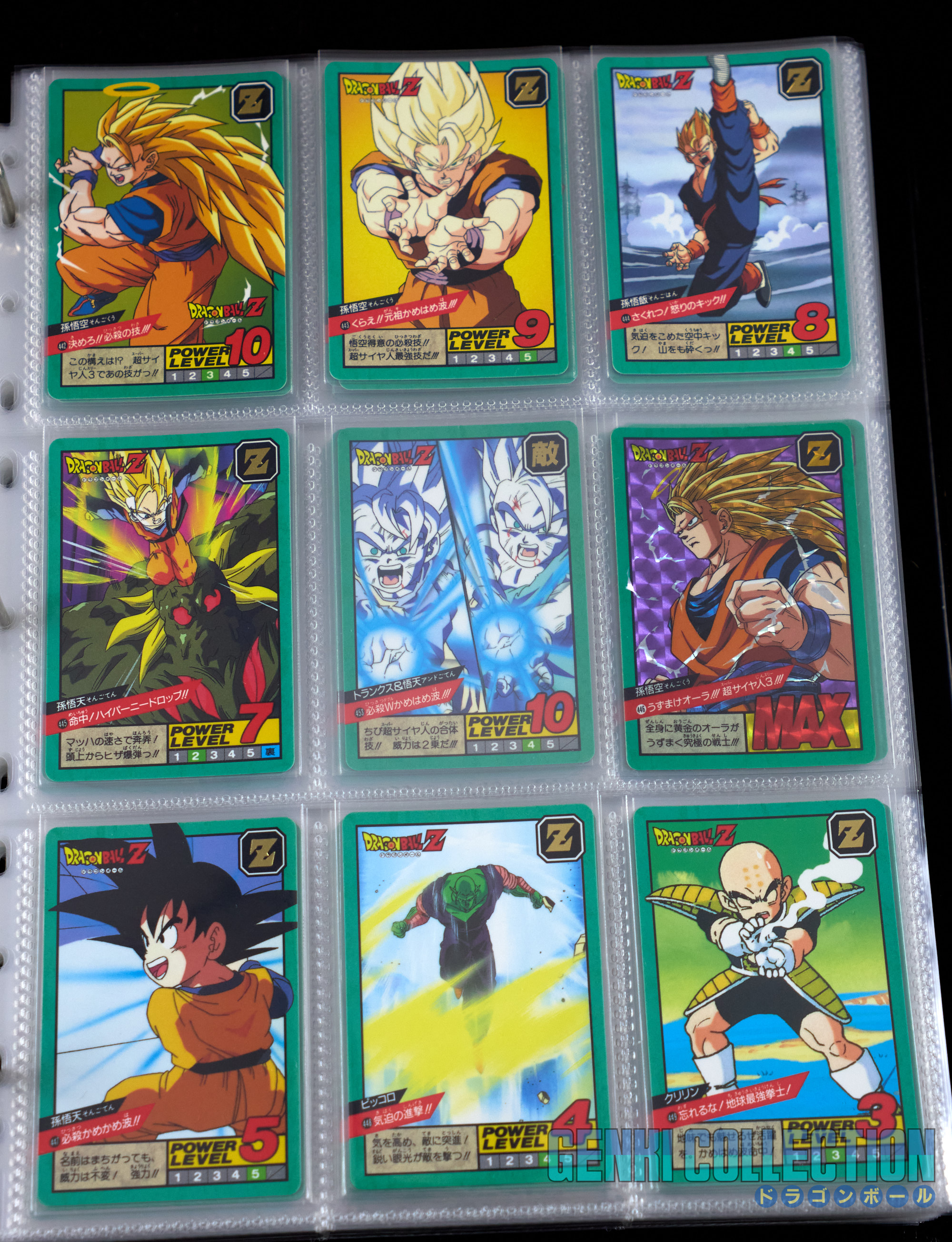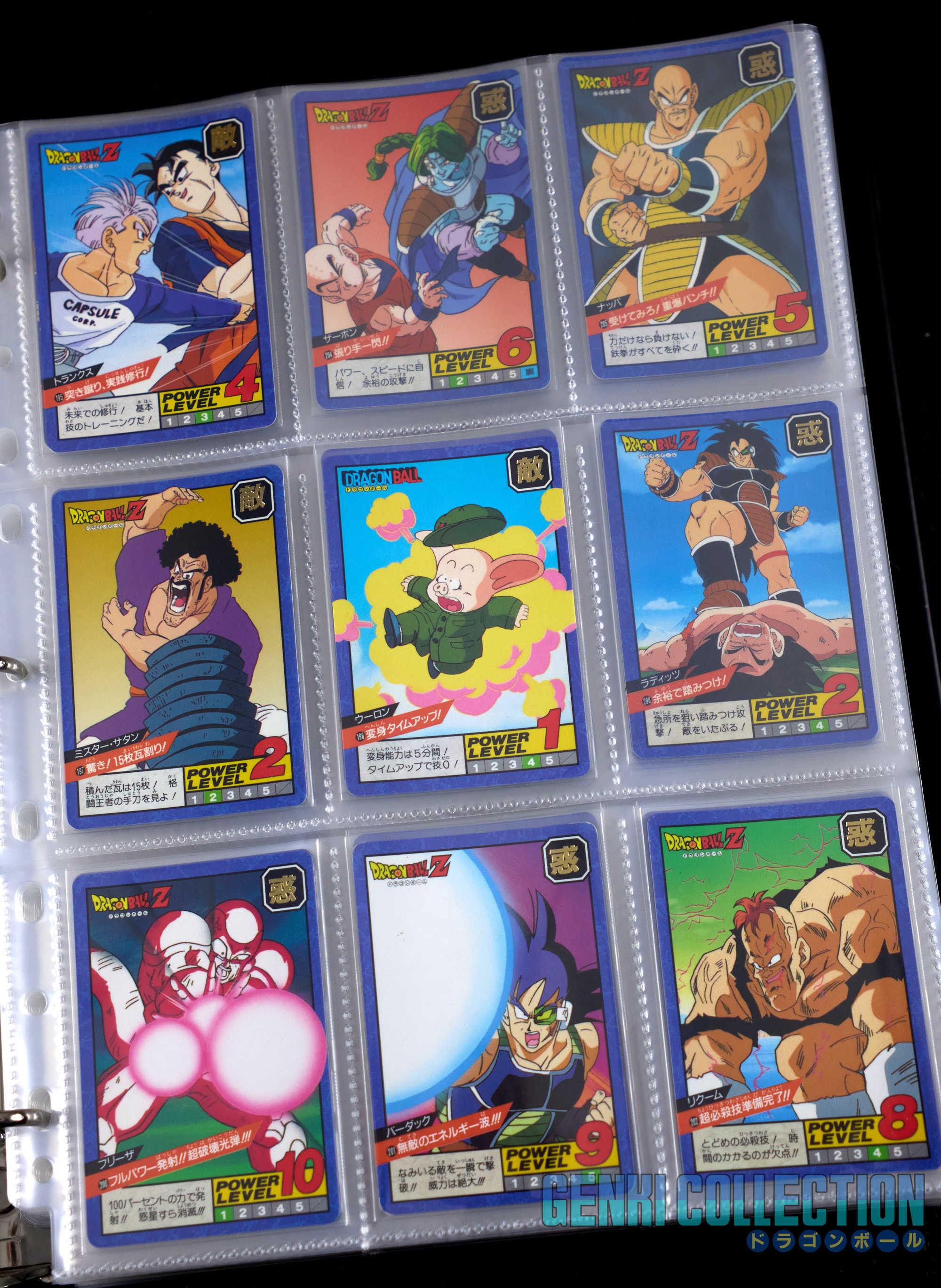Set complet des cartes communes (regulars) de la série SUPER BATTLE (POWER LEVEL) séries 1 (1991) à 20 (1997). Toutes les cartes sont des premières éditions originales et varient de très bon état à near mint.