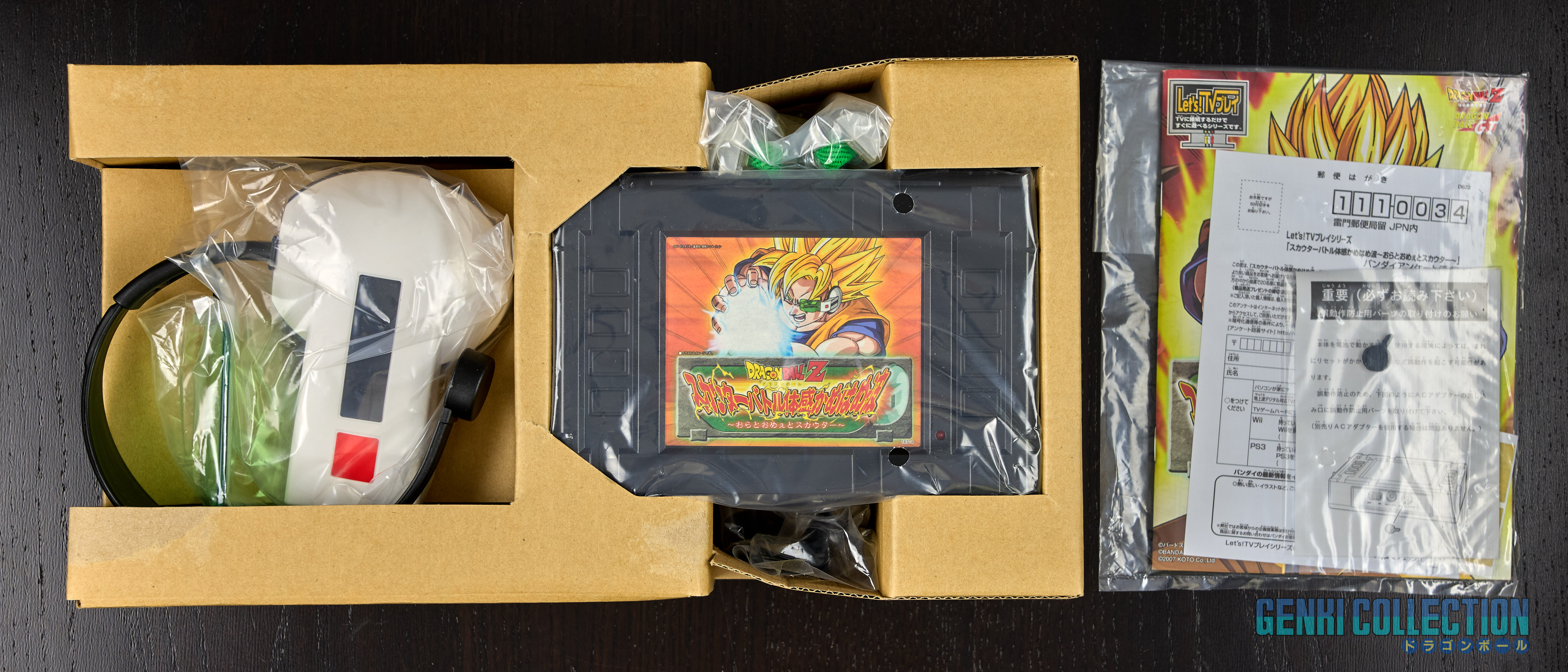Lot de 3 consoles DRAGON BALL Z BATTLE TAIKAN KAME HAME HA + alimentation officielleLot de 3 consoles DRAGON BALL Z BATTLE TAIKAN KAME HAME HA + alimentation officielle. Chaque console peut-être alimentée par des piles ou via l'alimentation officielle (un transformateur 110 V vers 220 V reste nécessaire et non fourni). Ces jeux permettent de jouer sur une TV à des jeux inédits dans le style de la WII, avec des capteurs les mouvements sont reproduits à l'écran. Le troisième jeu incus également un scouter. Les 3 consoles sont quasiment neuves, justes ouvertes, seul le 1 a été joué un peu. À noter une petite déchirure sur le bas de la boîte de la troisième console.